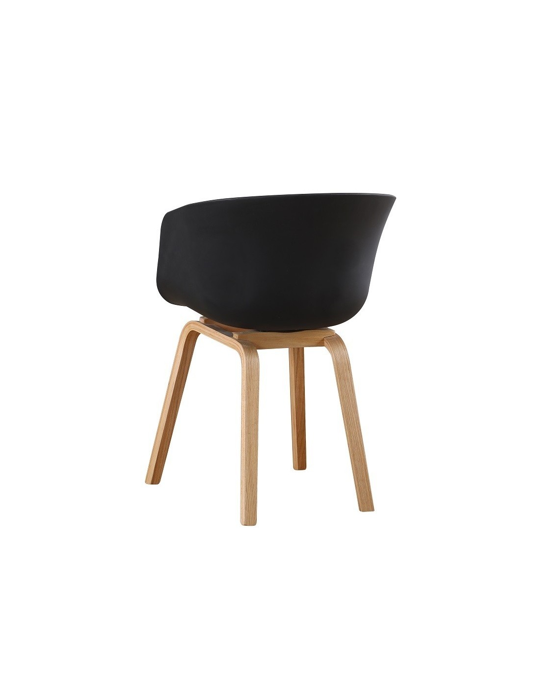 Sillón de diseño, armazón de madera curvada, carcasa de polipropileno negro. Taburete a juego