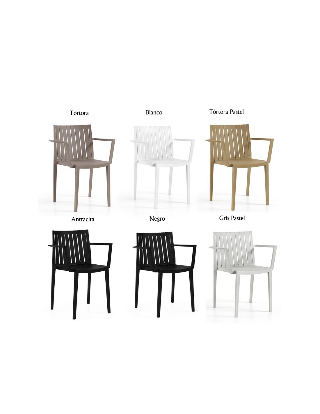Sillón de diseño, apilable, polipropileno reforzado con fibra de vidrio de color blanco. Tratamiento anti rayos UV. Uso en exterior e interior. Otros colores disponibles. Silla, Taburete y Mesa a juego
