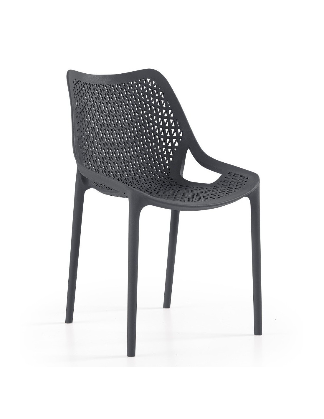 Sillón de diseño, base de metal con acabado negro, asiento de polipropileno inyectado de color natural, respaldo de cuerda de color natural.