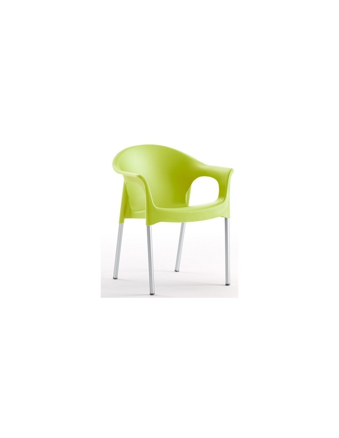 Sillón apilable, aluminio, polipropileno verde lima. Uso en exterior e interior. Otros colores disponibles.
