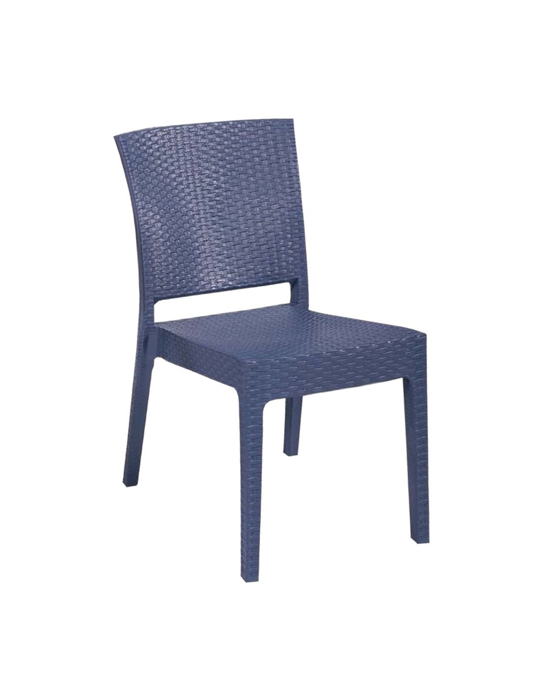 Silla apilable, imitación a ratán, polipropileno gris oscuro. Uso en exterior e interior. Otros colores disponibles. Mesas a juego