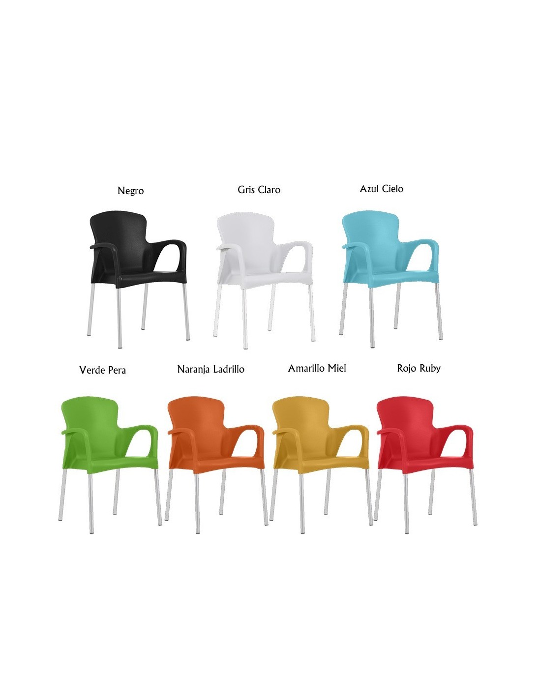 Sillón apilable, polipropileno blanco. Uso en exterior e interior. Otros colores disponibles. Mesas a juego.