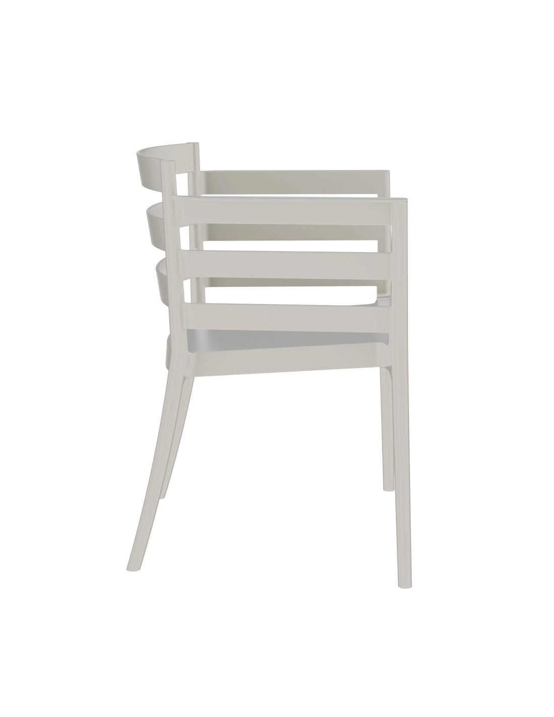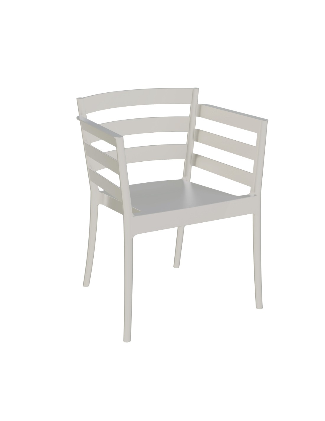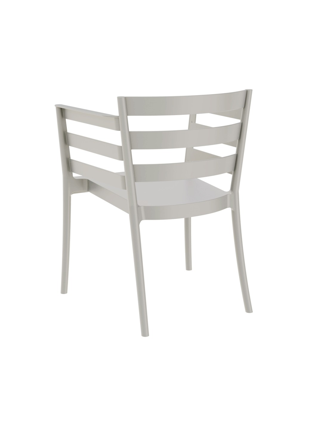 Sillón apilable, polipropileno gris pálido. Uso en exterior e interior. Otros colores disponibles.