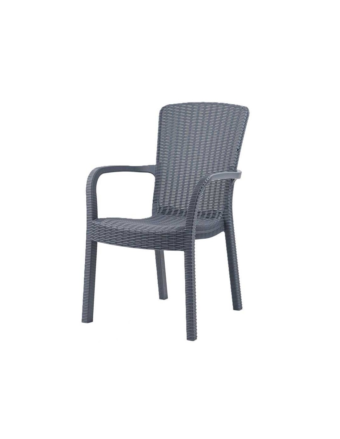 Sillón apilable, imitación a rattán, polipropileno gris. Uso en exterior e interior. Otros colores disponibles.