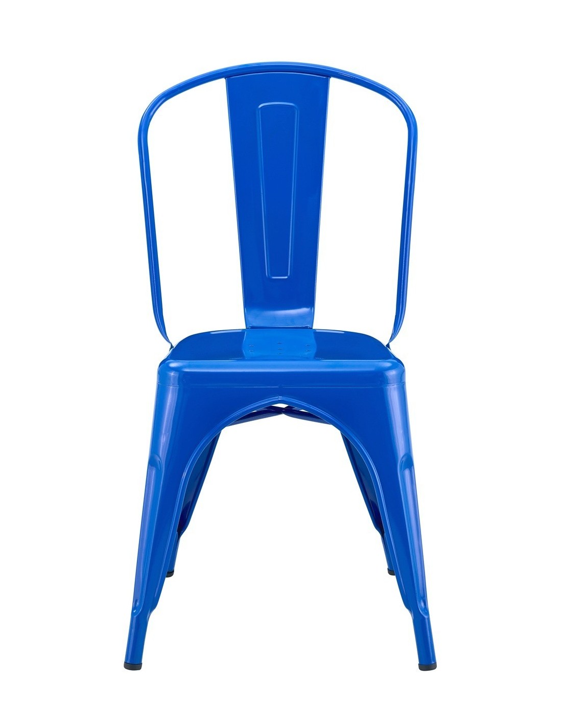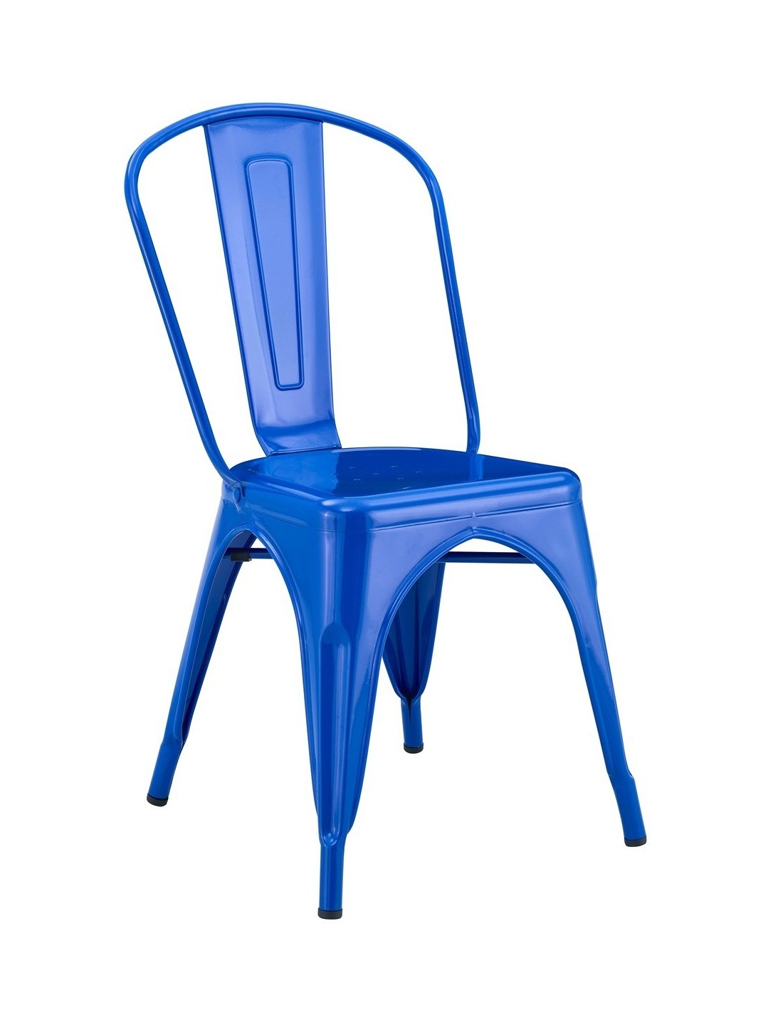 Silla de diseño, estructura de acero, pintada en azul. Uso en interiores o exteriores. Otros acabados y colores disponibles. Mesa, sillón y taburete a juego.