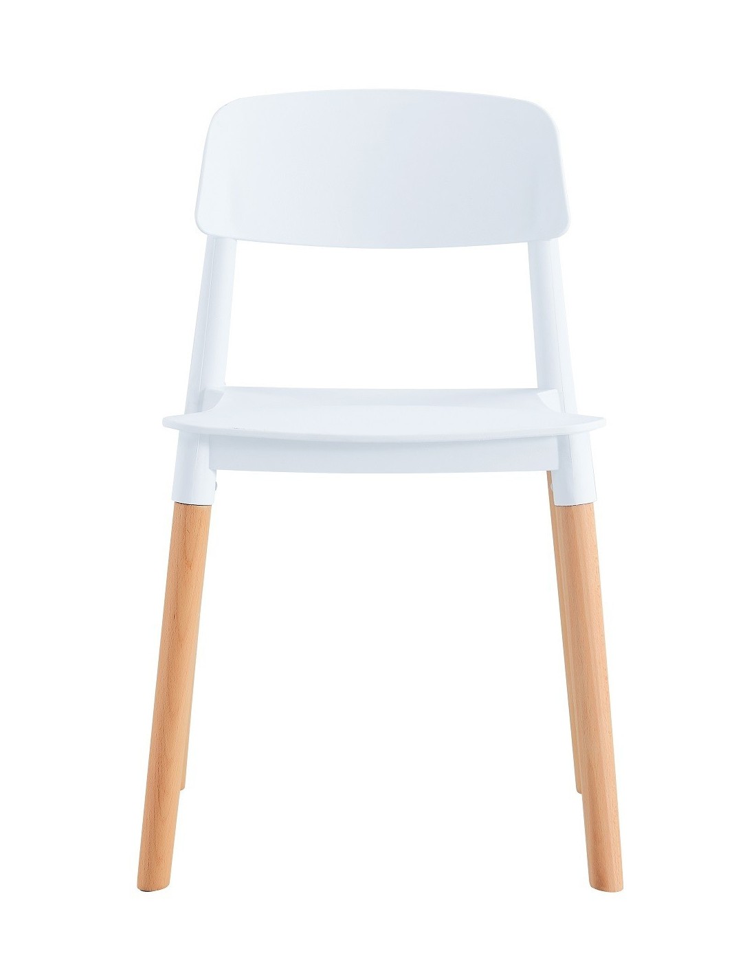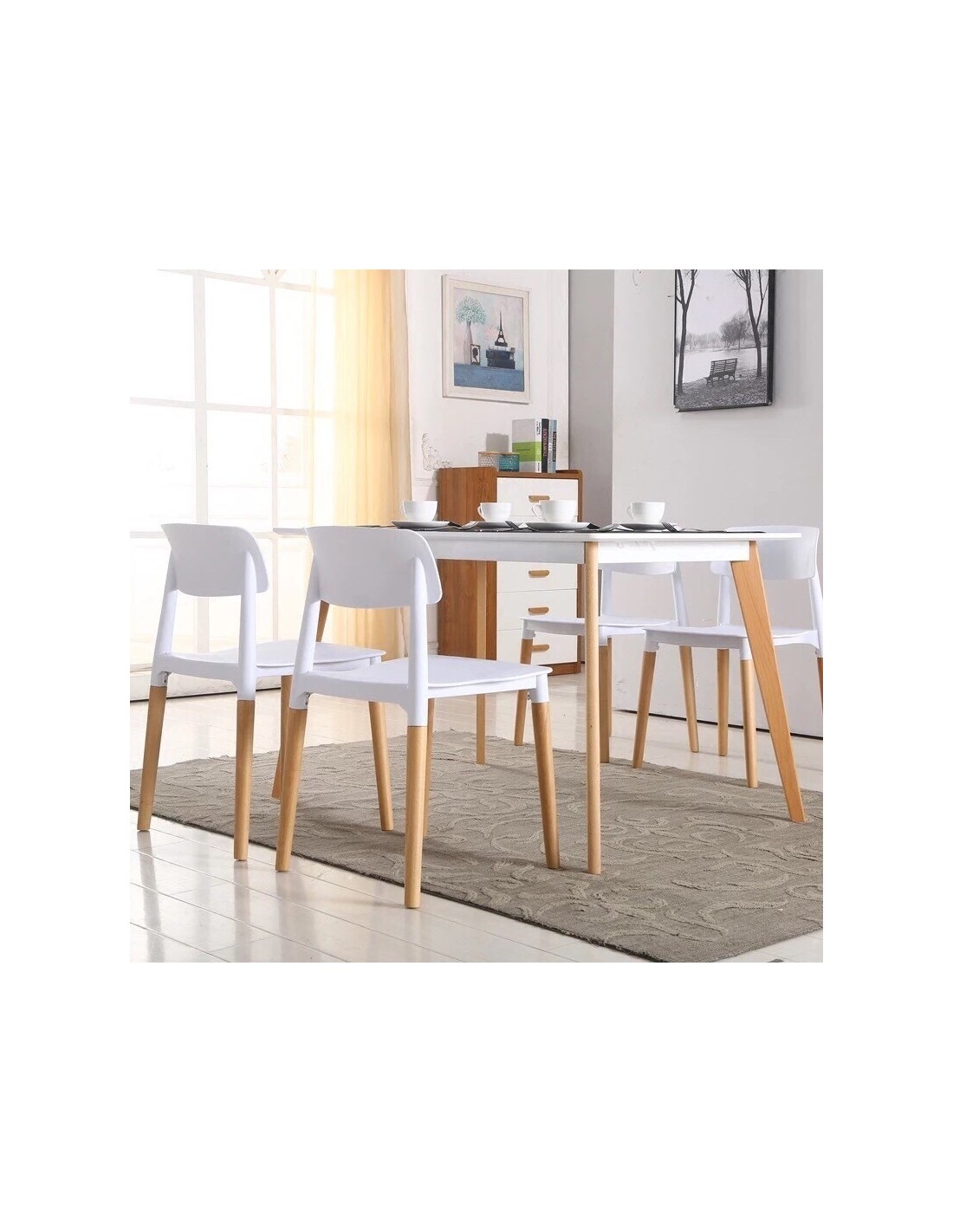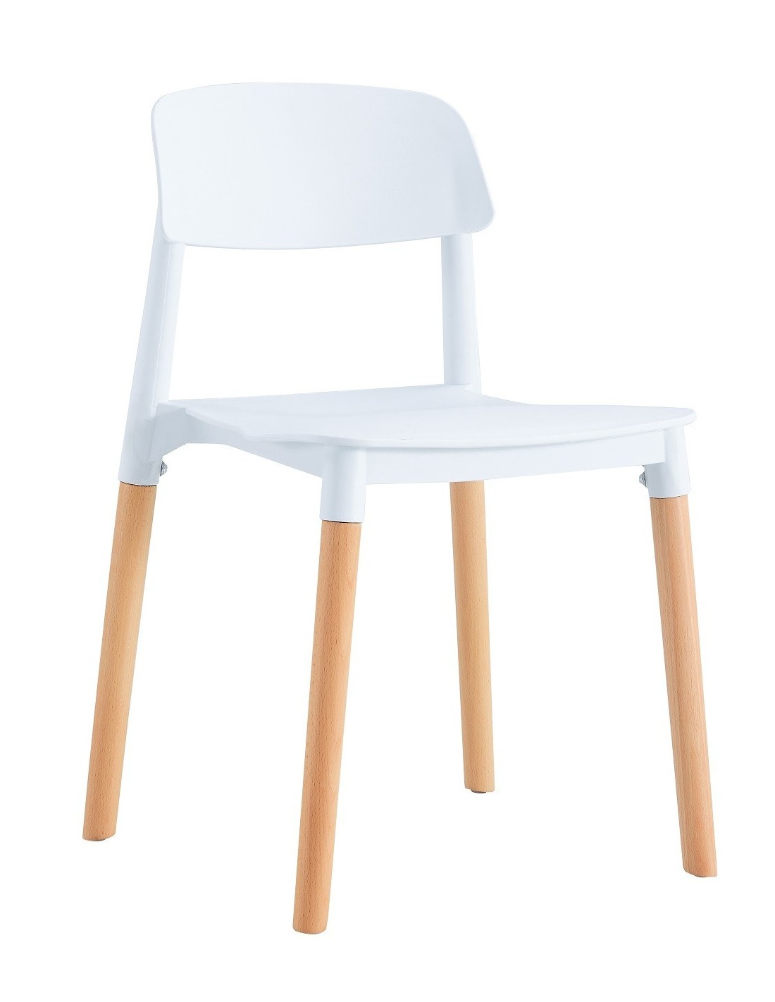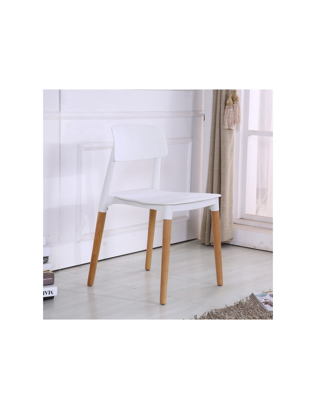 Silla de diseño, madera de haya, carcasa de polipropileno blanco, cojín de asiento en similpiel blanco. Otros colores disponibles.
