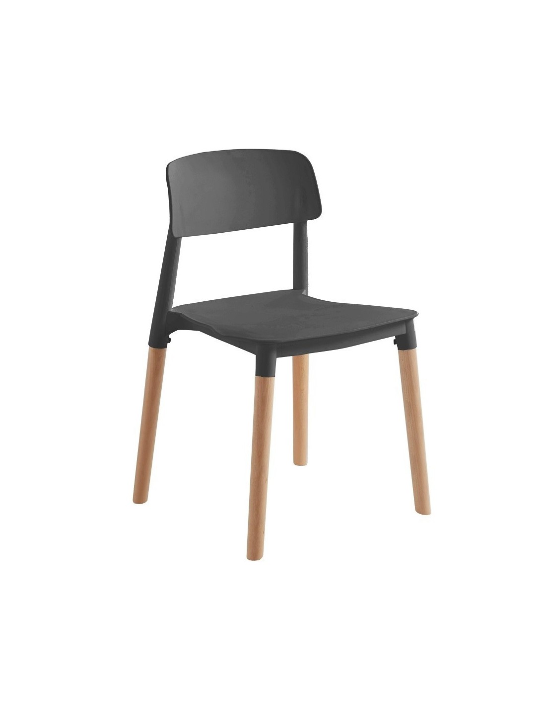 Silla DUBLIN, contrachapado de madera de hevea, natural, similpiel negra