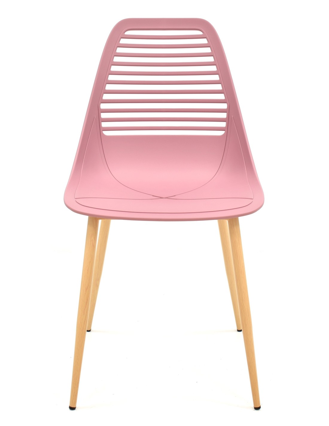-Base de metal con acabado imitación madera, asiento y respaldo de polipropileno inyectado en color rosa oscuro