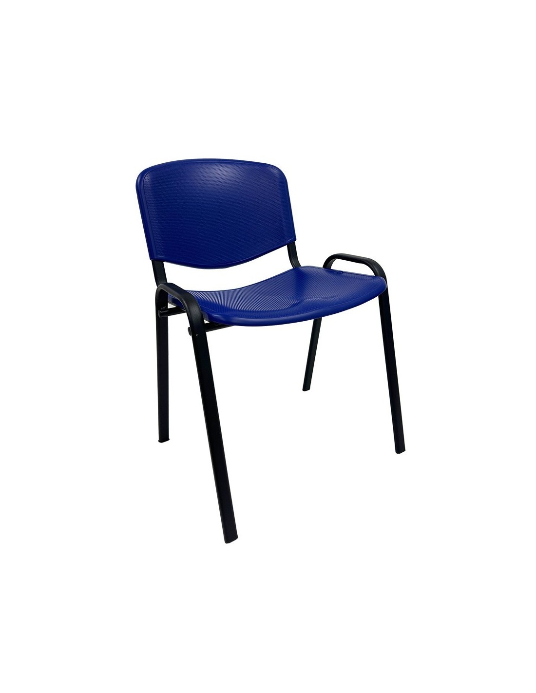 Silla multiusos, chasis epoxi negro, plástico azul.