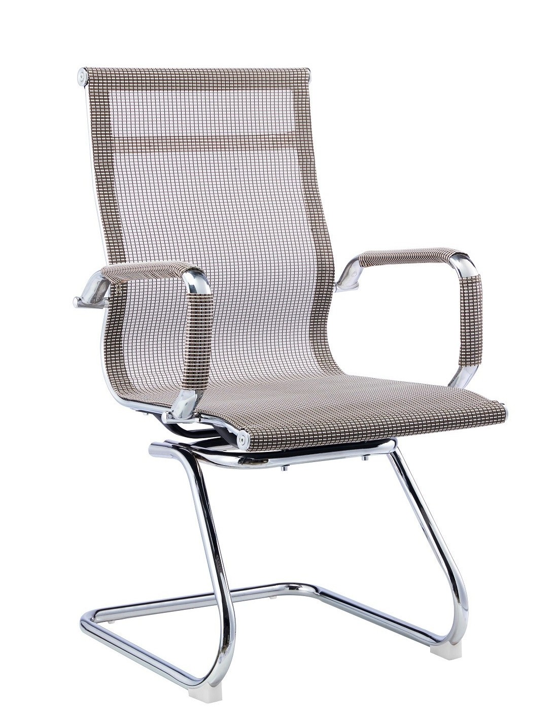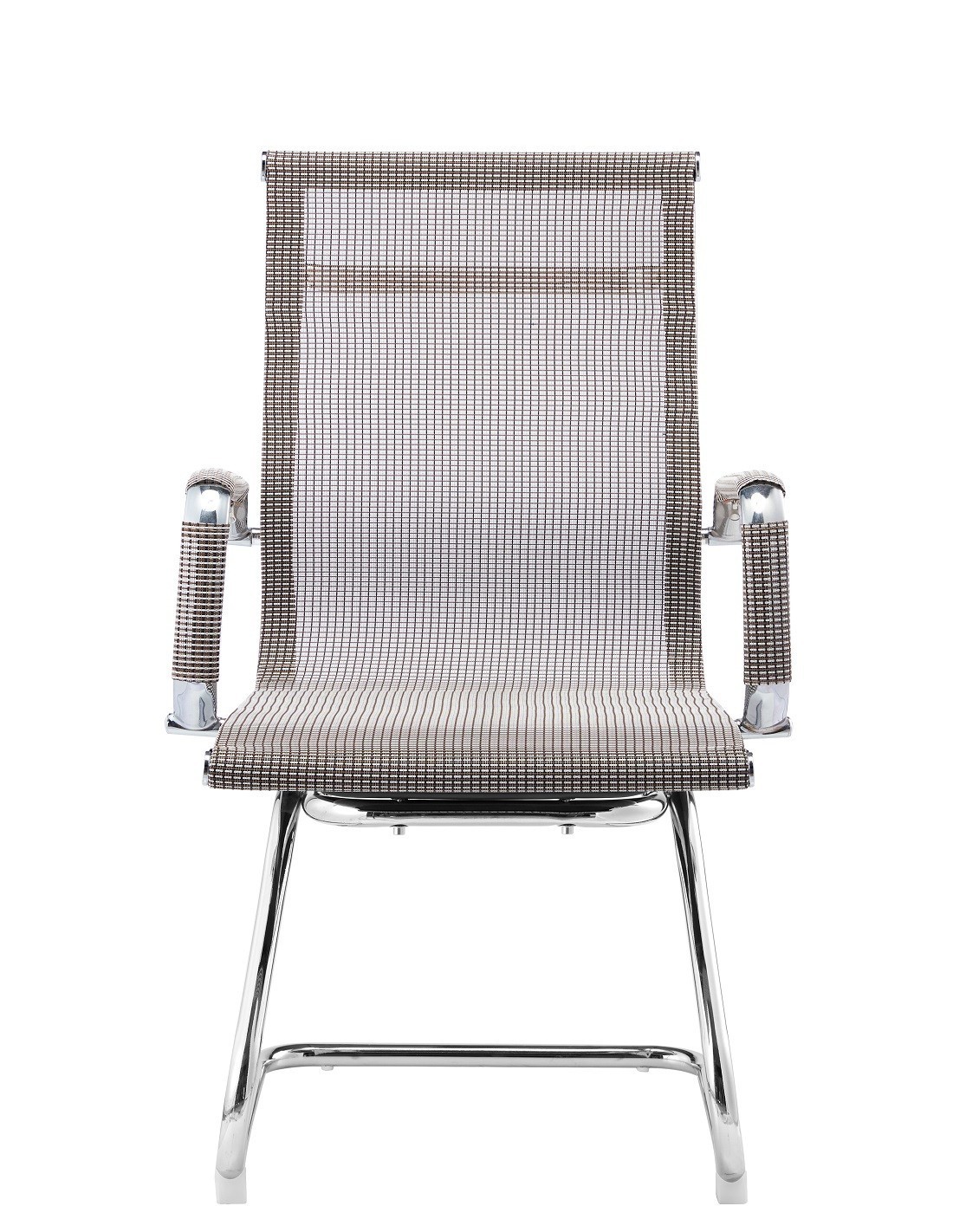 Sillón fijo de patín, diseño, cromado, tapizado malla marrón. Otros colores disponibles