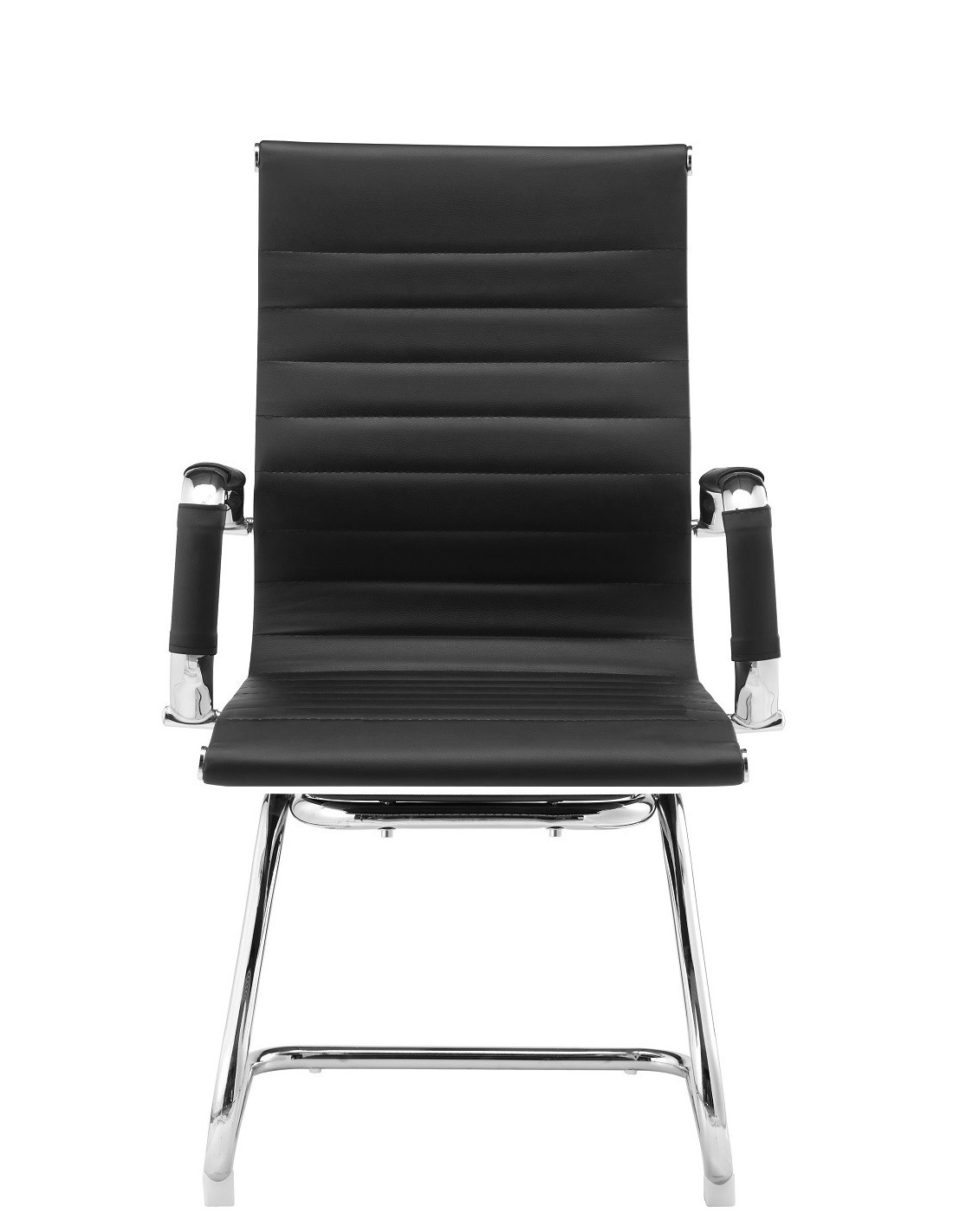 Sillón de oficina OLIVER, fijo de patín, cromado, similpiel negra