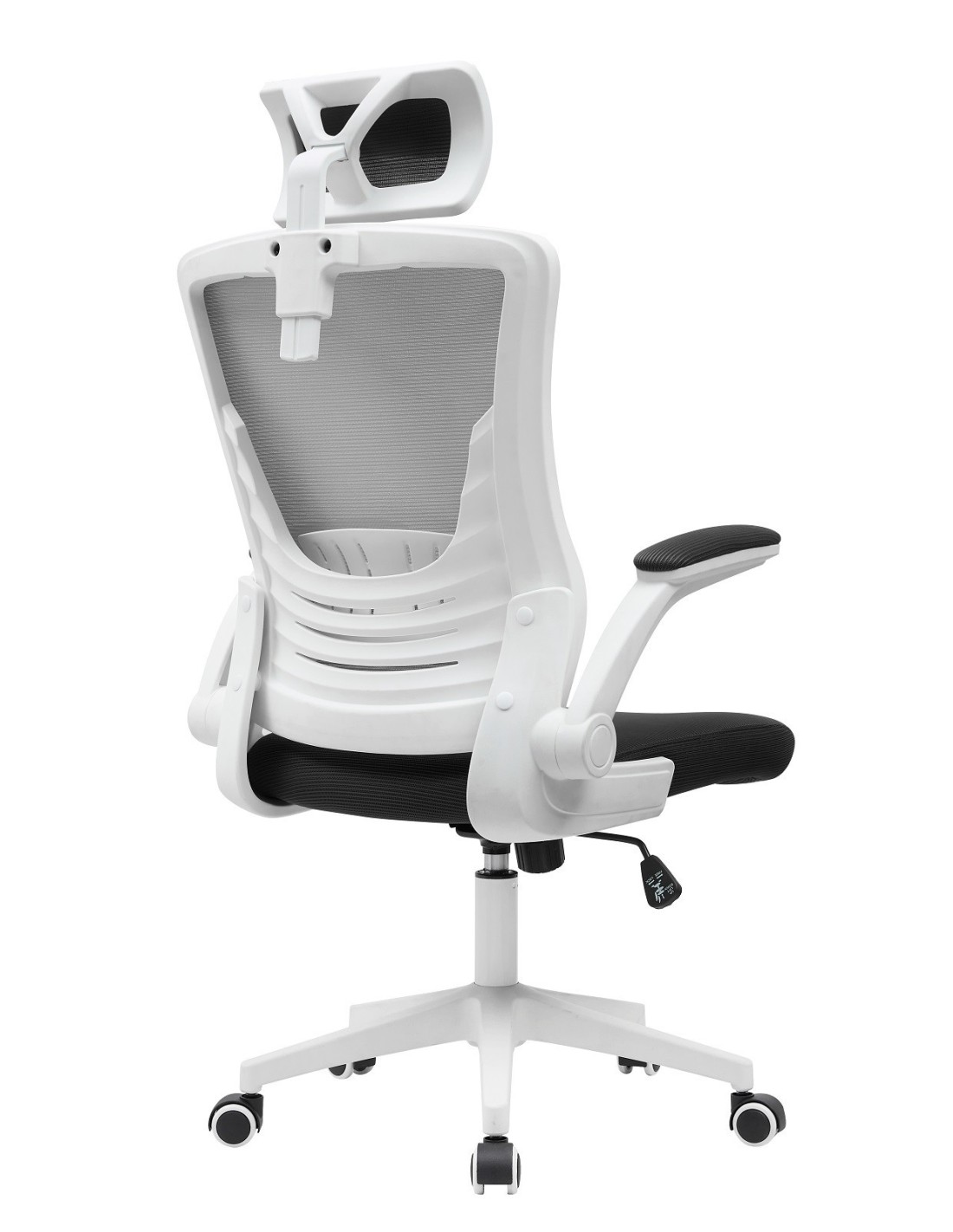 Sillón de oficina LAURO, alto, blanco, malla gris, asiento negro