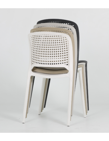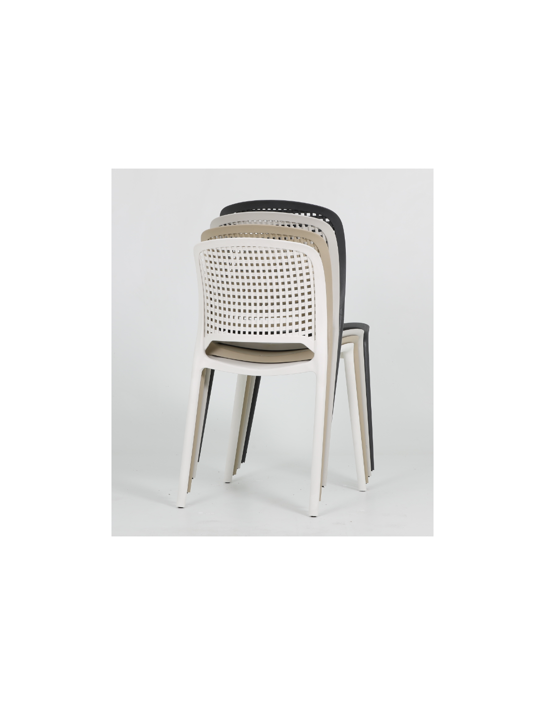 Sillón apilable, imitación a rattán, polipropileno antracita, cojín gris. Uso en exterior e interior. Otros colores disponibles.