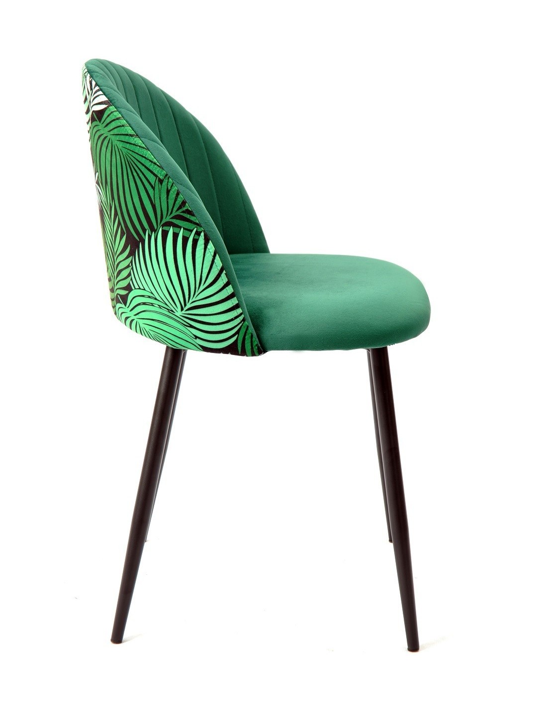 Silla FLORAL, metal, tapizado velvet verde con trasera floral a juego