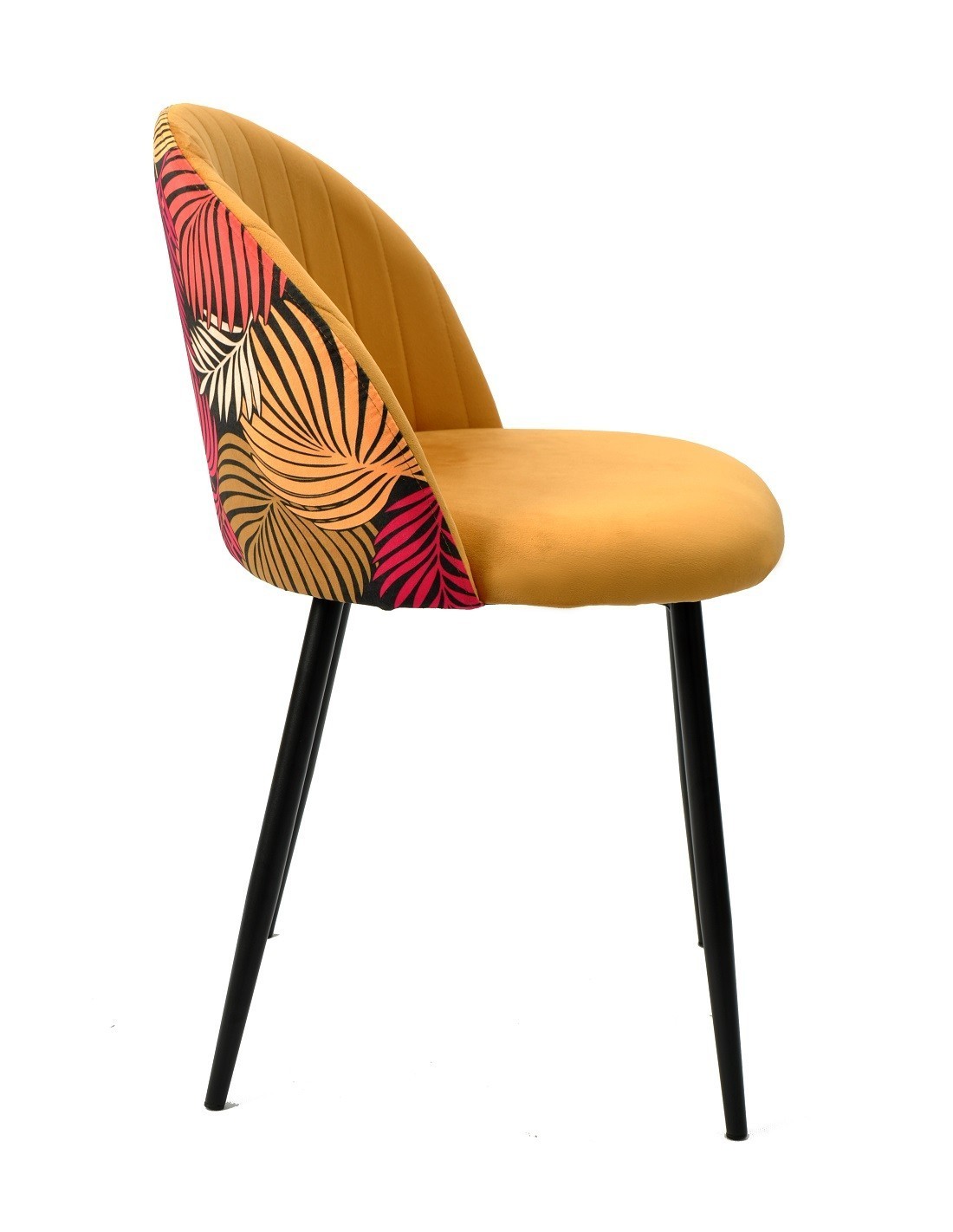 Silla FLORAL, metal, tapizado velvet amarillo con trasera floral a juego