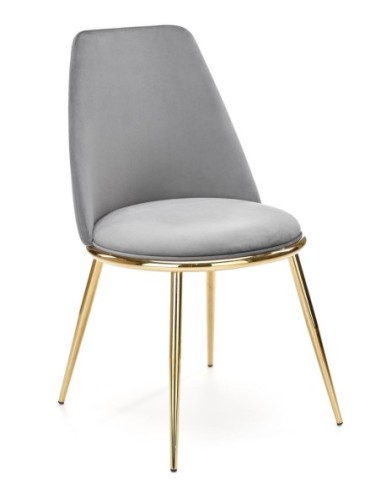 Silla TAVIRA, metal, cromado dorado, tapizado velvet gris