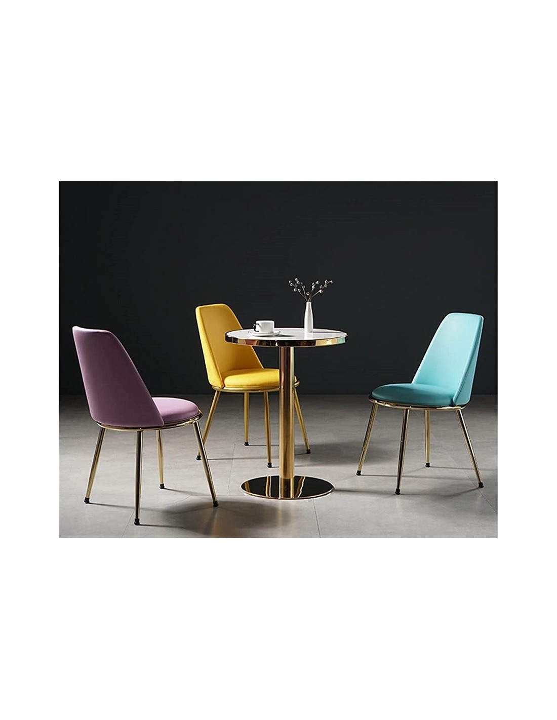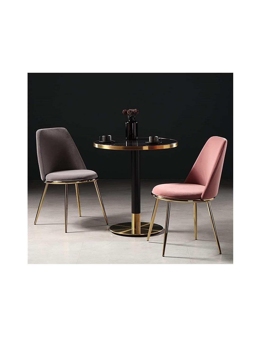 Silla de diseño, armazón metálico con acabado cromado dorado, asiento y respaldo tapizados en tejido velvet de color gris oscuro. Otros colores disponibles.