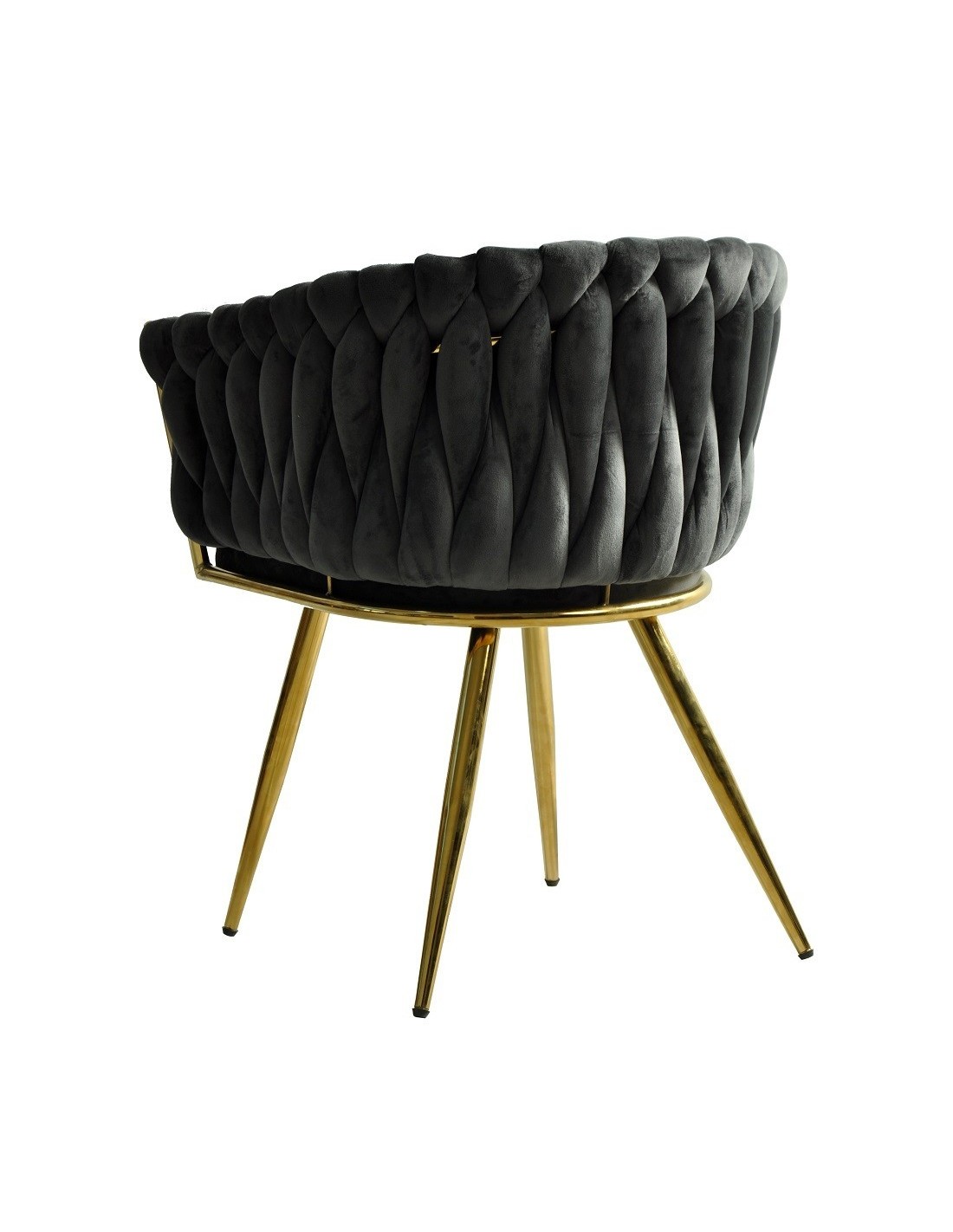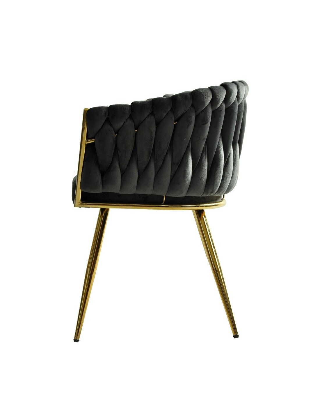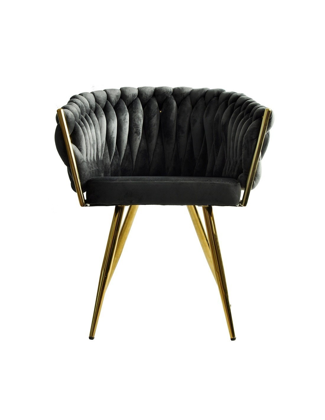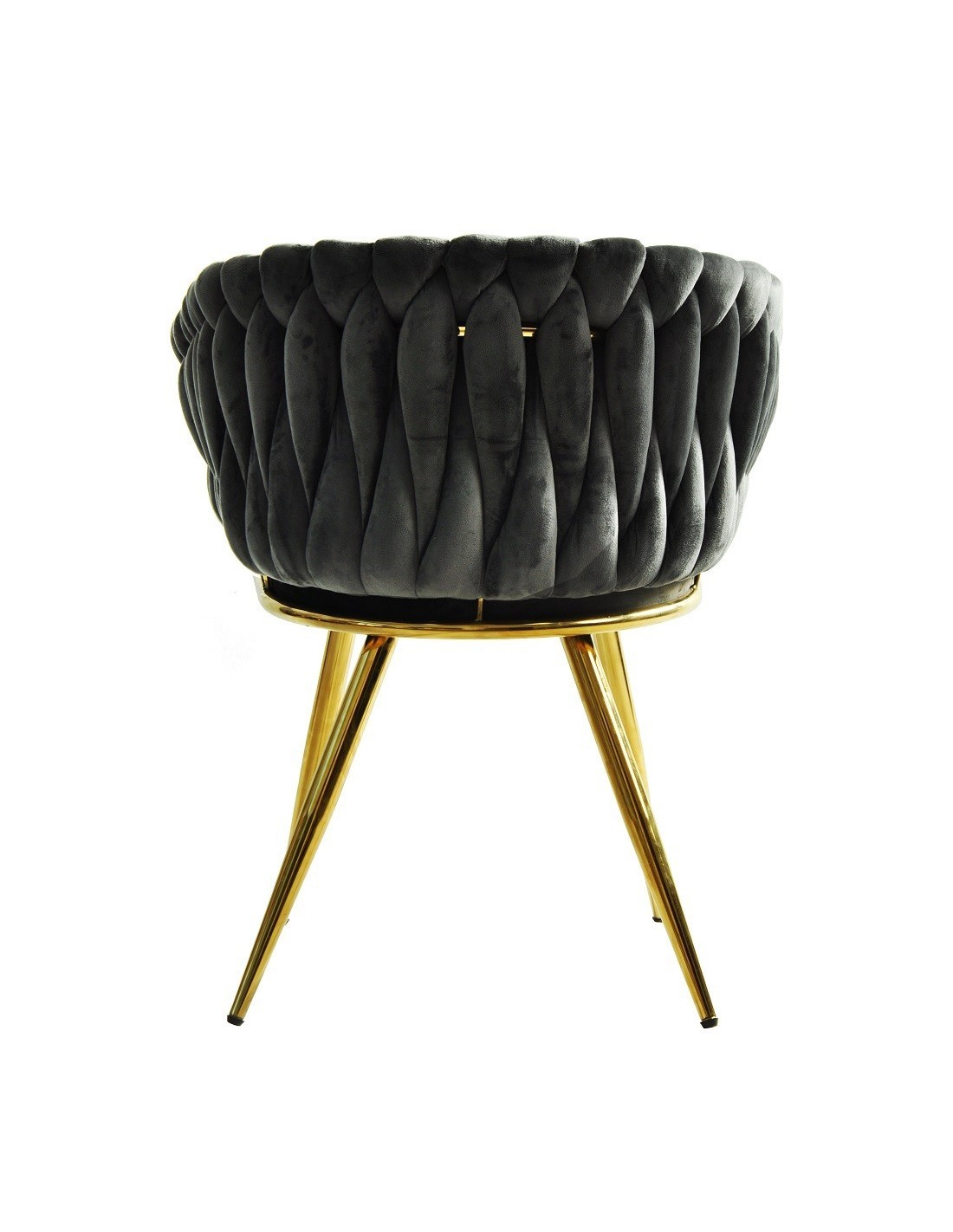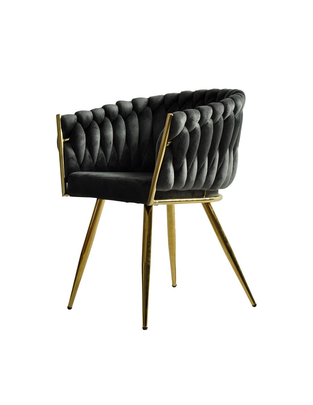 Sillón de diseño, armazón metálico con acabado cromado dorado, asiento y respaldo tapizados en tejido velvet de color gris oscuro. Otros colores disponibles.