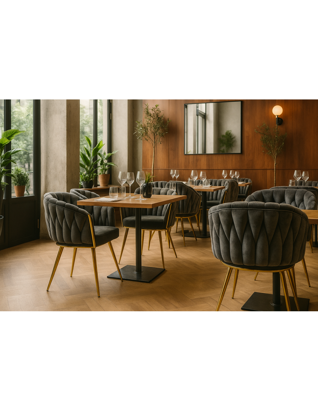 -Asiento y respaldo tapizados en tejido velvet de color gris oscuro