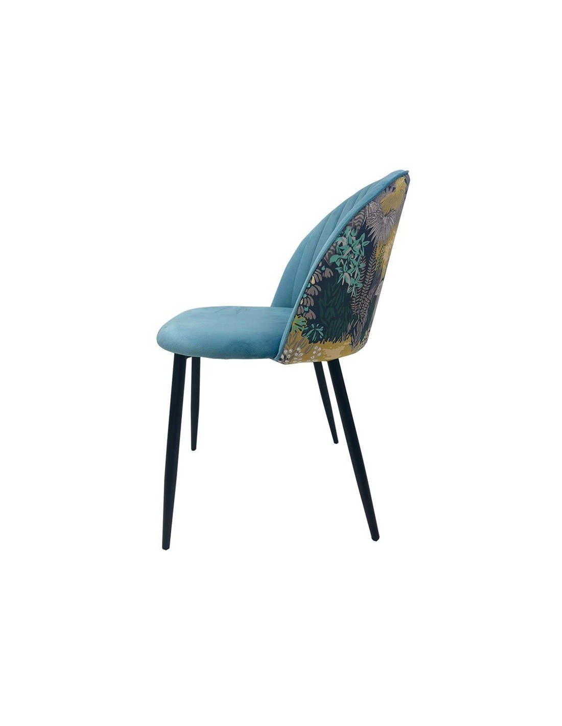Silla PALM SKY BLUE, metal, tapizado velvet azul con trasera palm