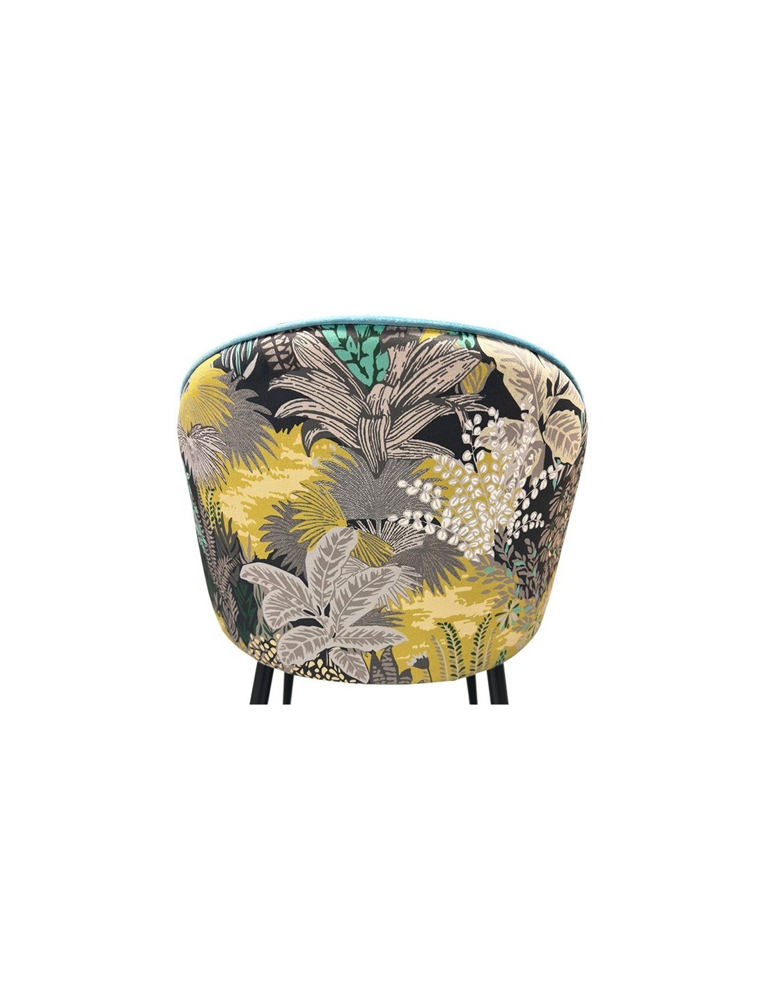 -Asiento y respaldo tapizados en terciopelo de color azul, trasera del respaldo en tejido decorado palm