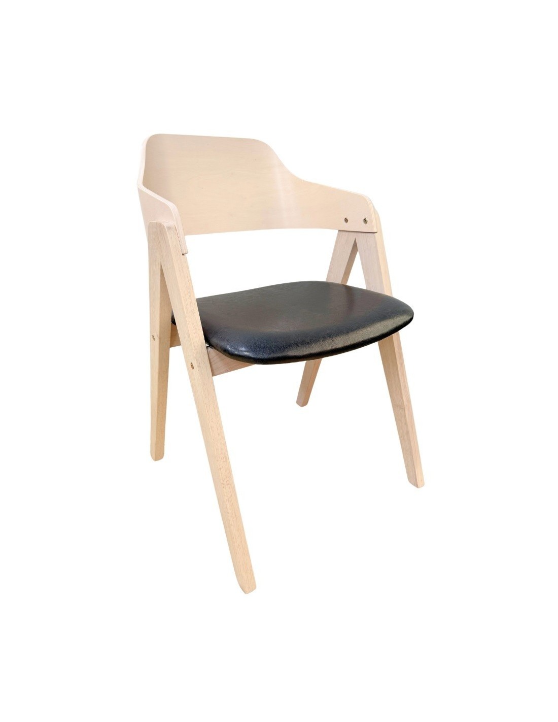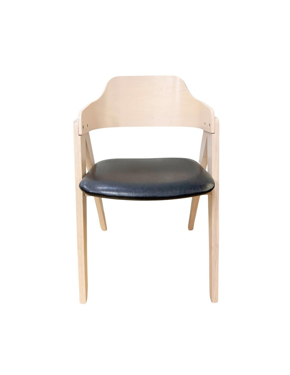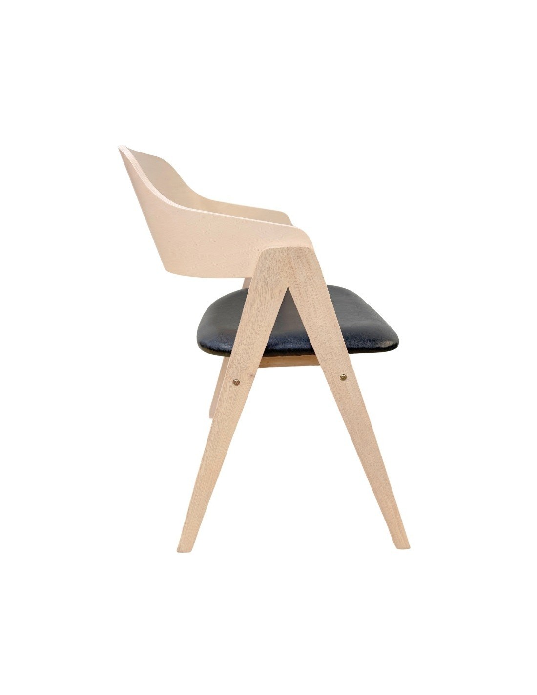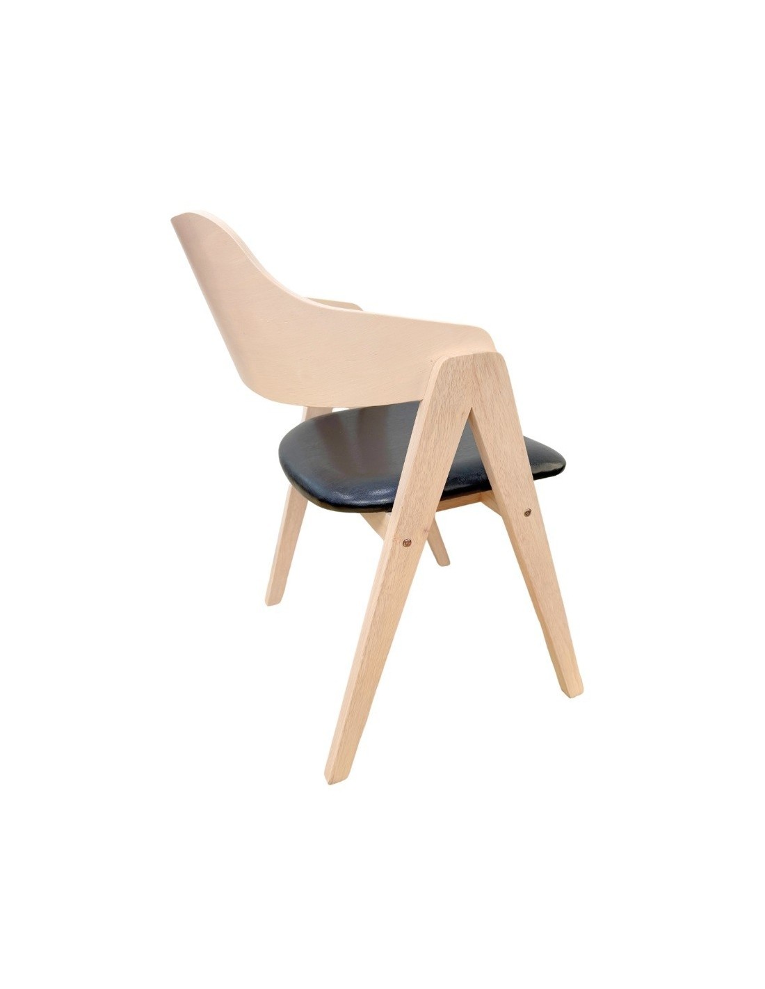 Sillón JARSY, madera de hevea, natural, similpiel negra
