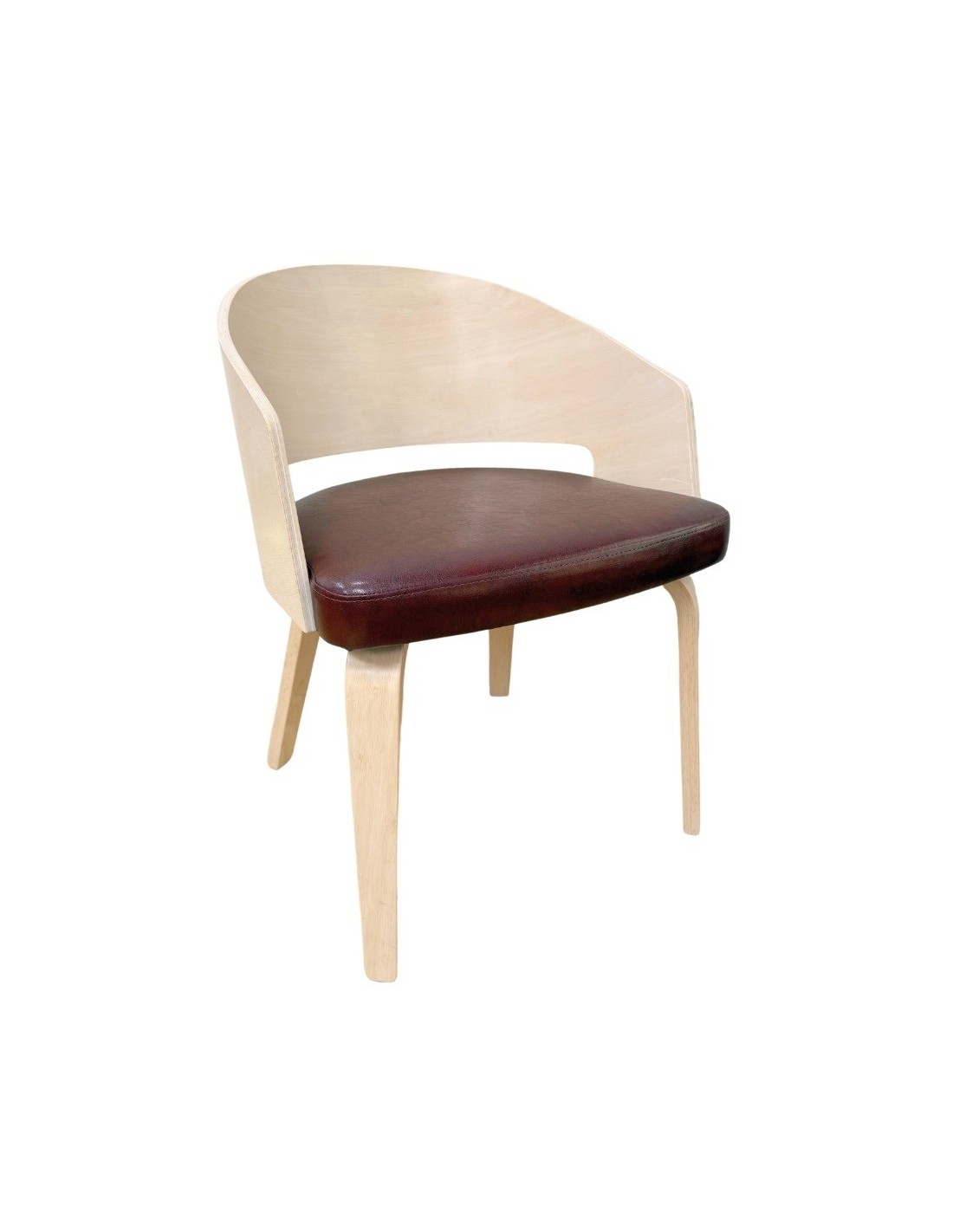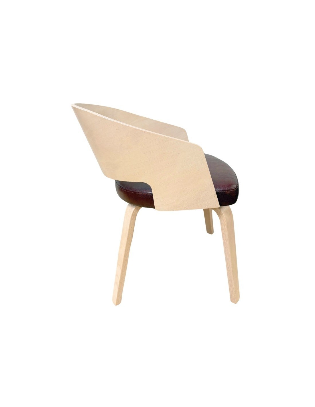 Sillón SINTRA, contrachapado de madera de hevea, natural, similpiel marrón