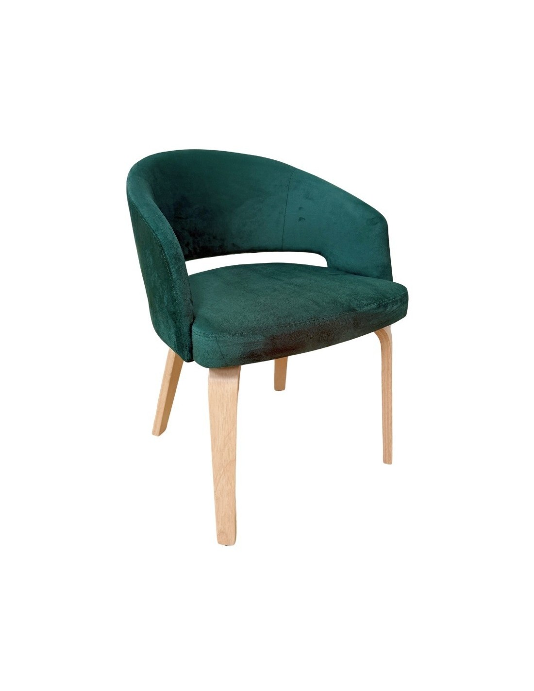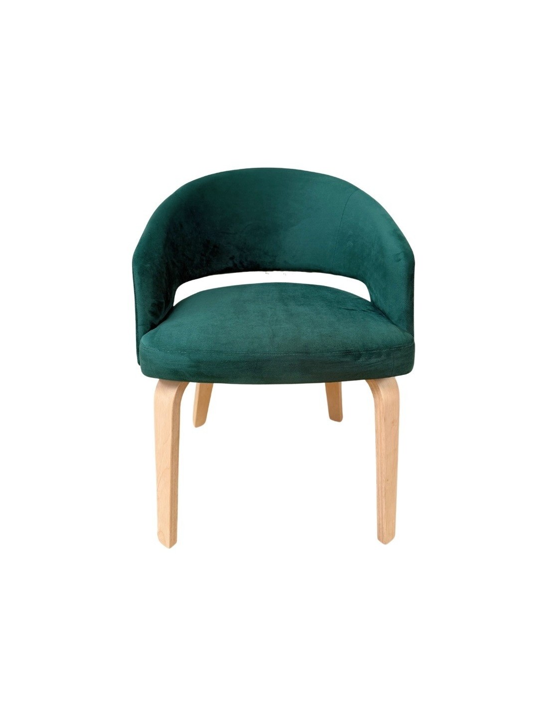 Sillón VISEU, contrachapado de madera de hevea, natural, velvet verde oscuro
