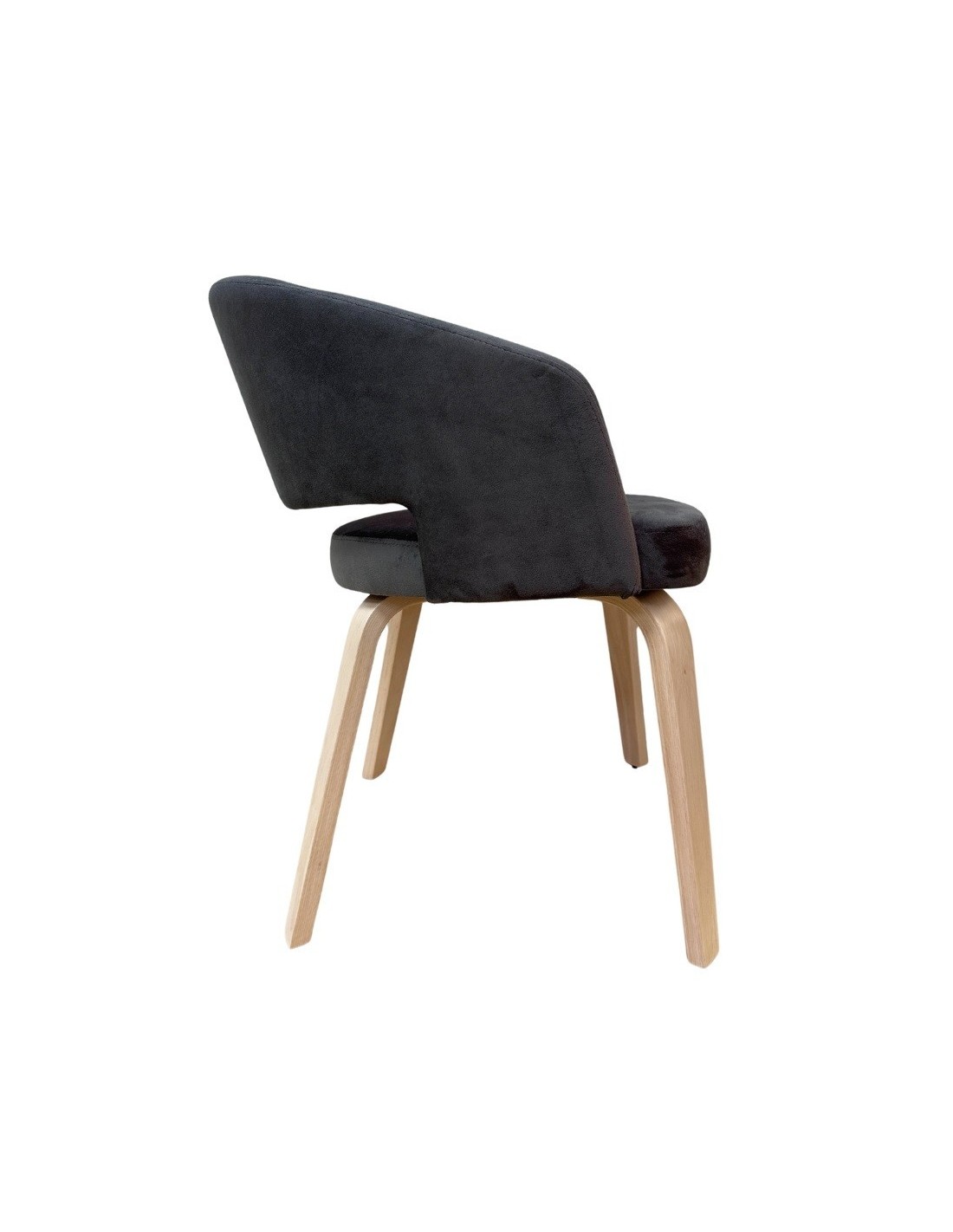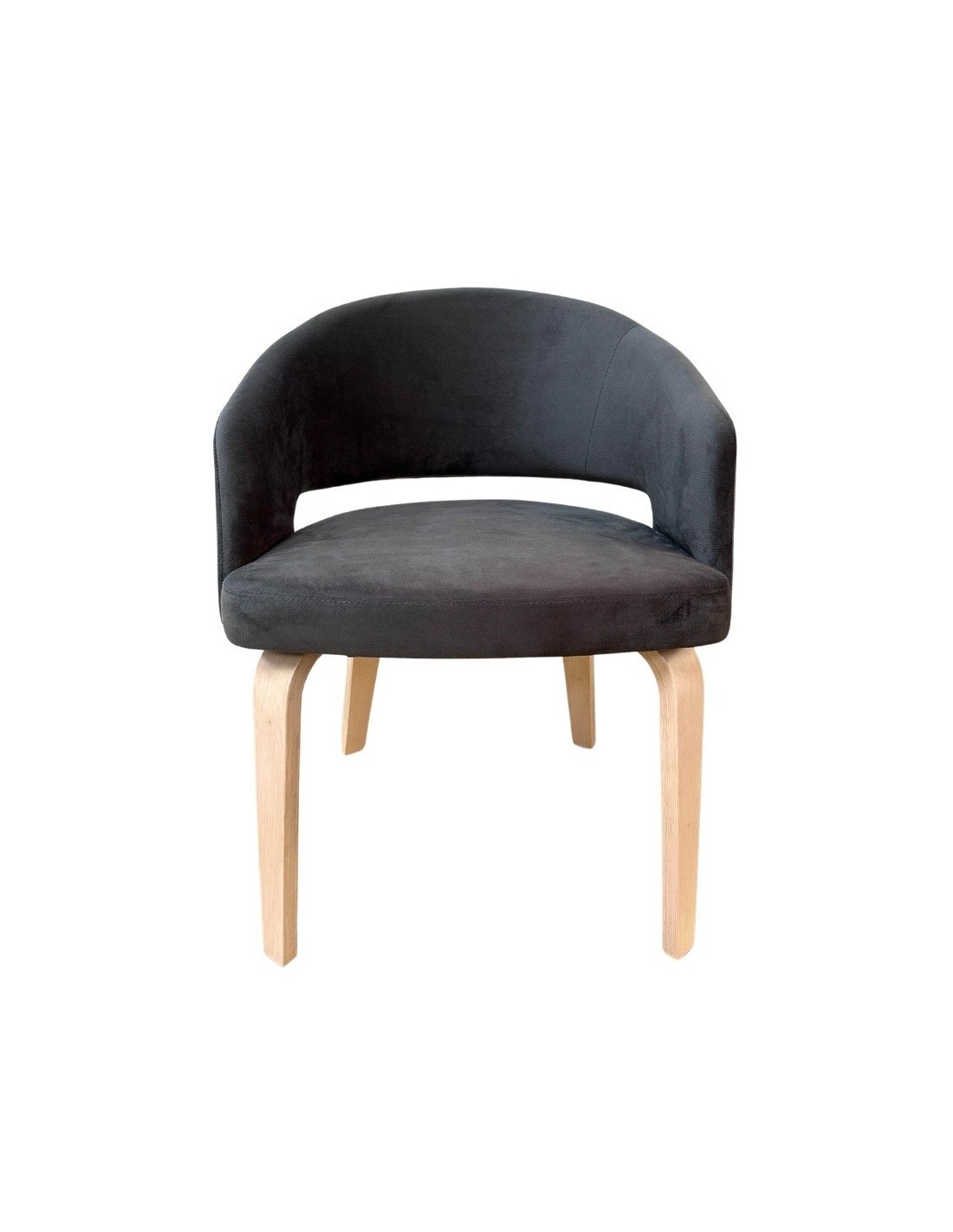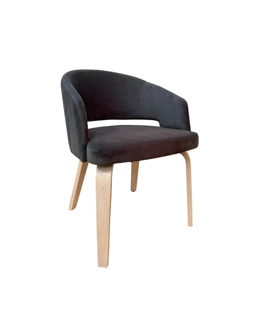 Sillón VISEU, contrachapado de madera de hevea, natural, velvet gris oscuro