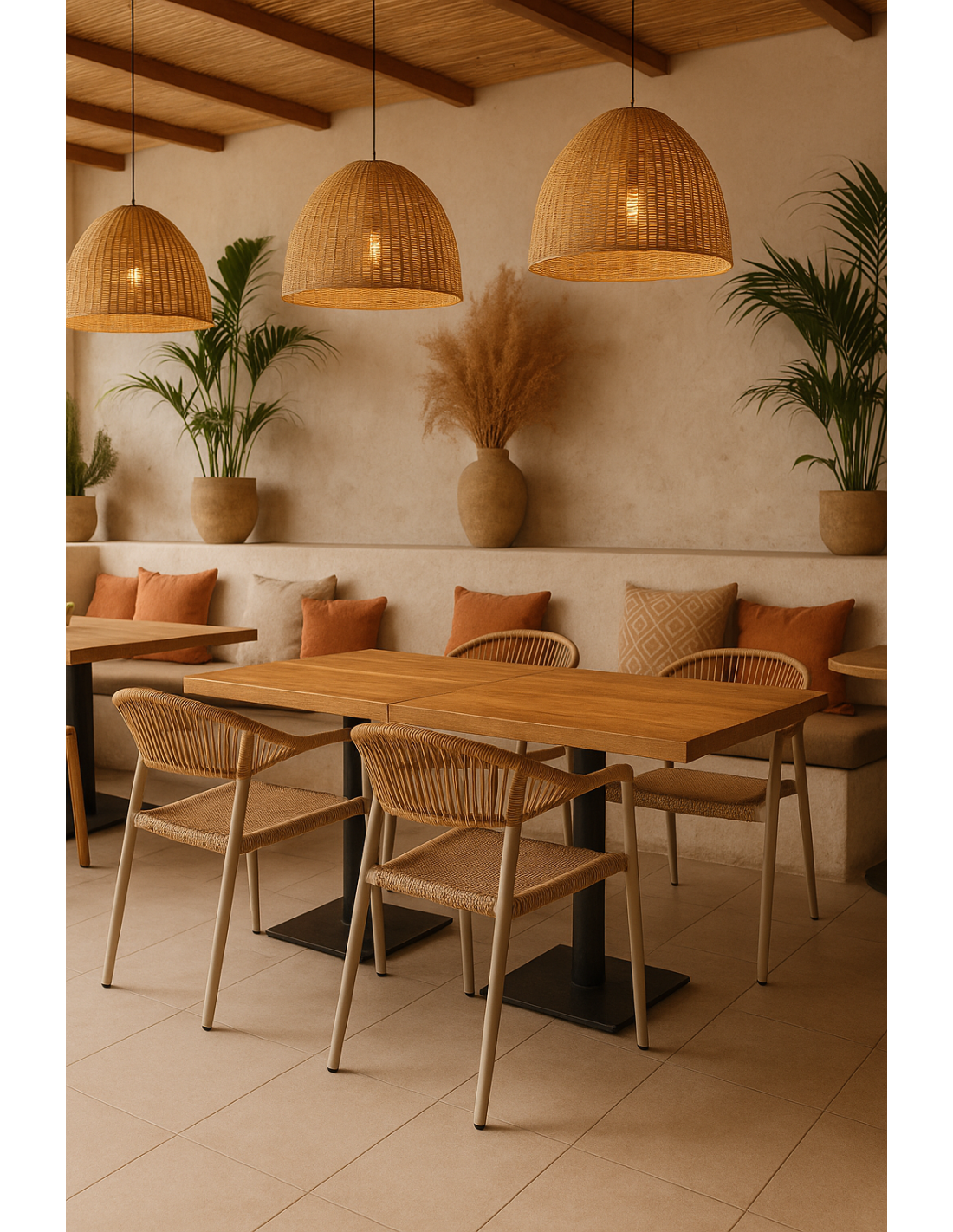 Sillón MÓNACO, apilable, aluminio, ratán y teslin