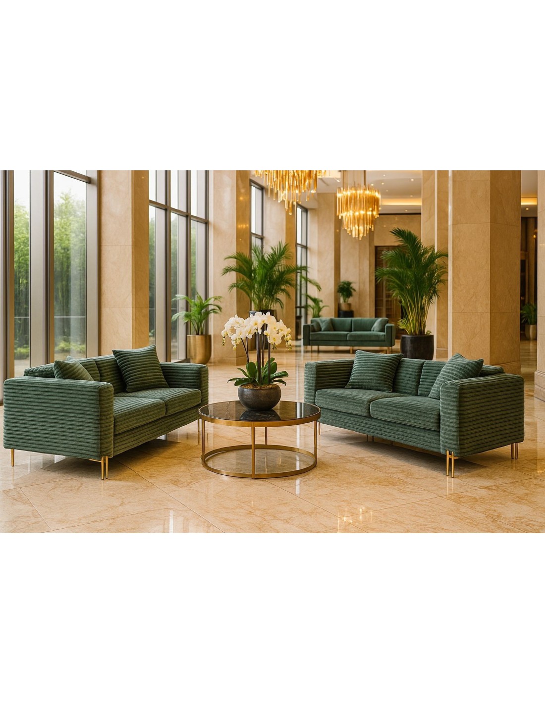Sofá de diseño 3 plazas, corduroy verde claro. Sofá de 2 plazas a juego. Otros colores disponibles