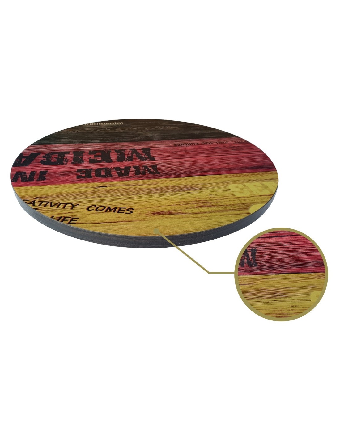Tablero de mesa vintage, 25 mm de espesor. Formato redondo de 60 cms. de diámetro. Canto de PVC