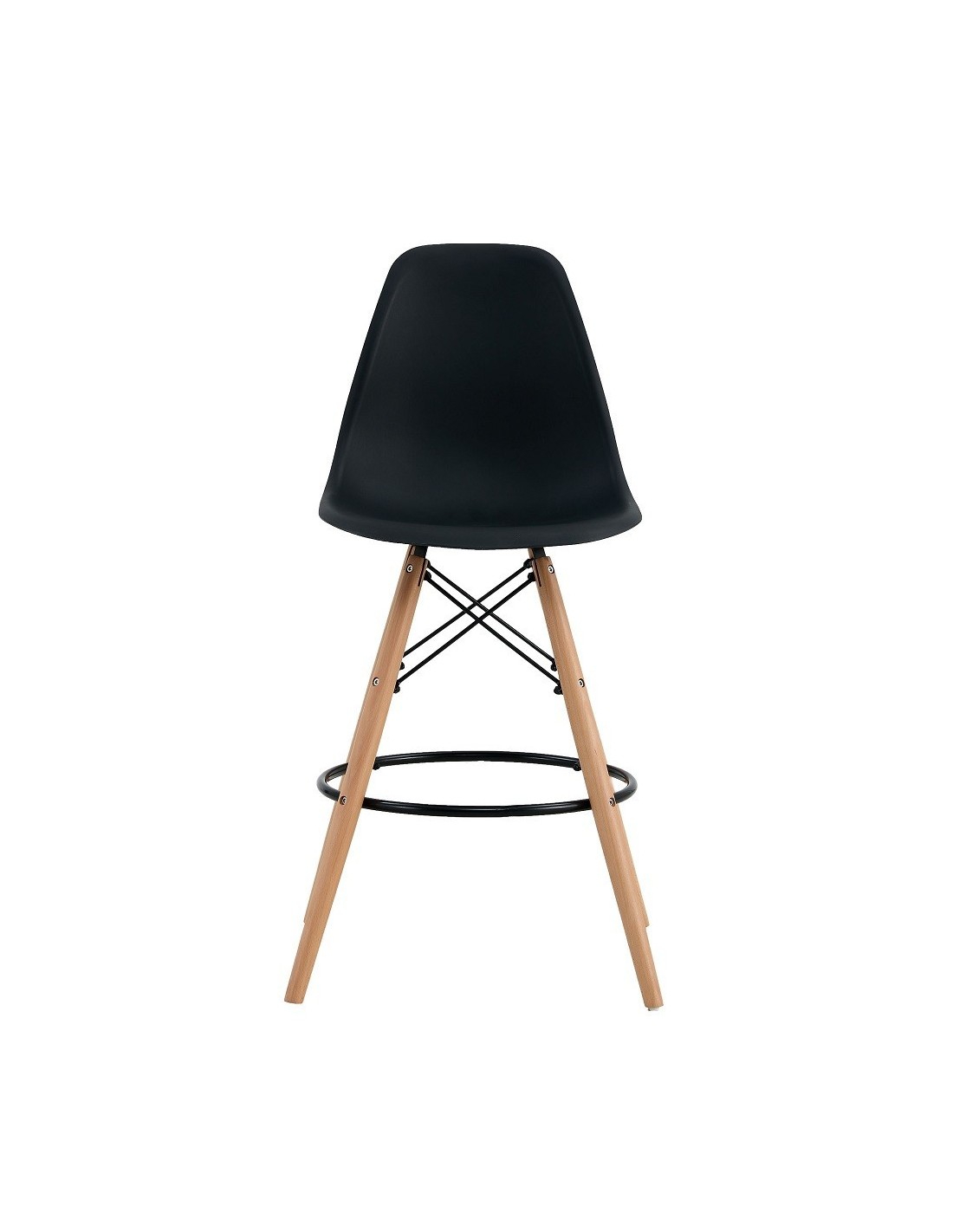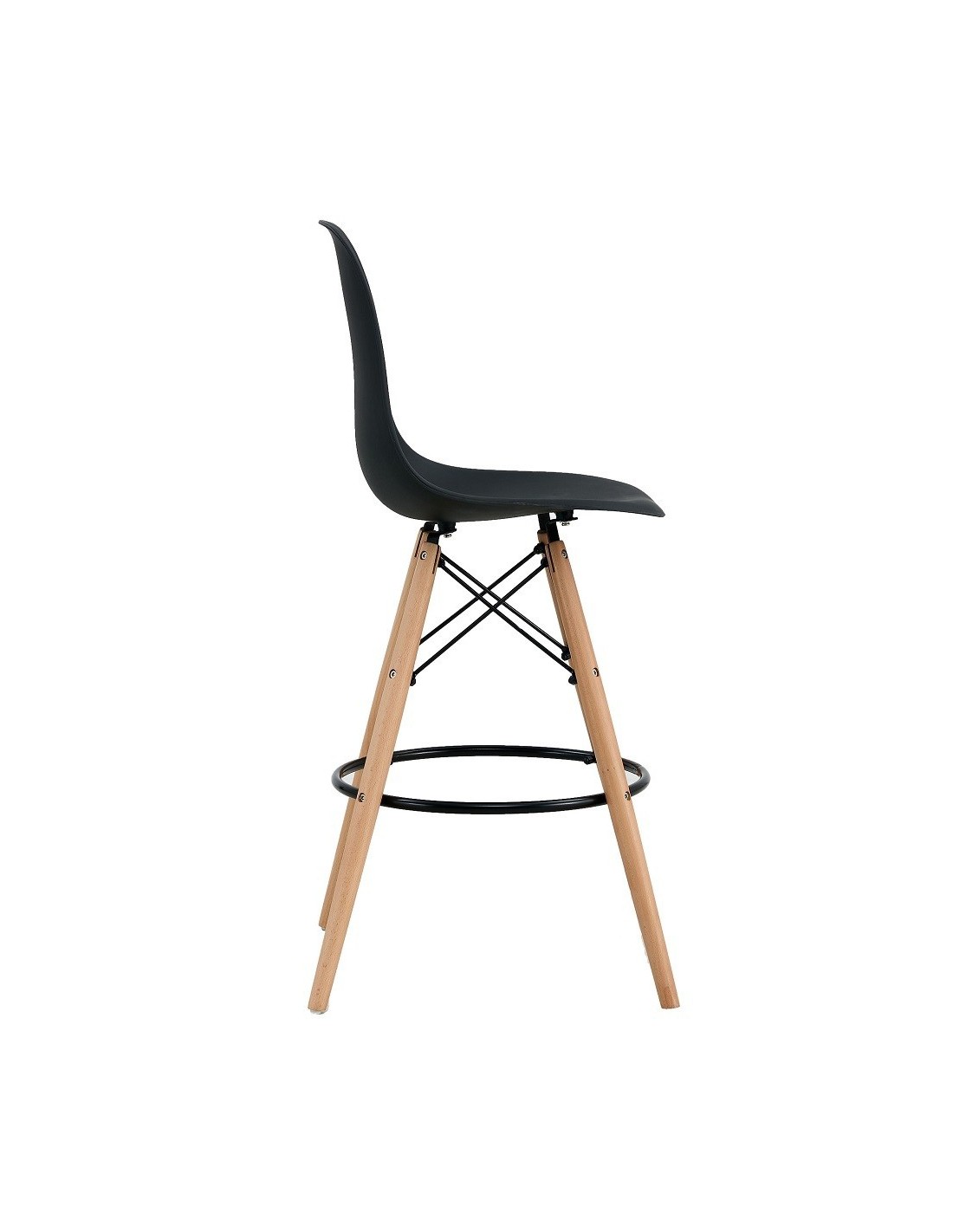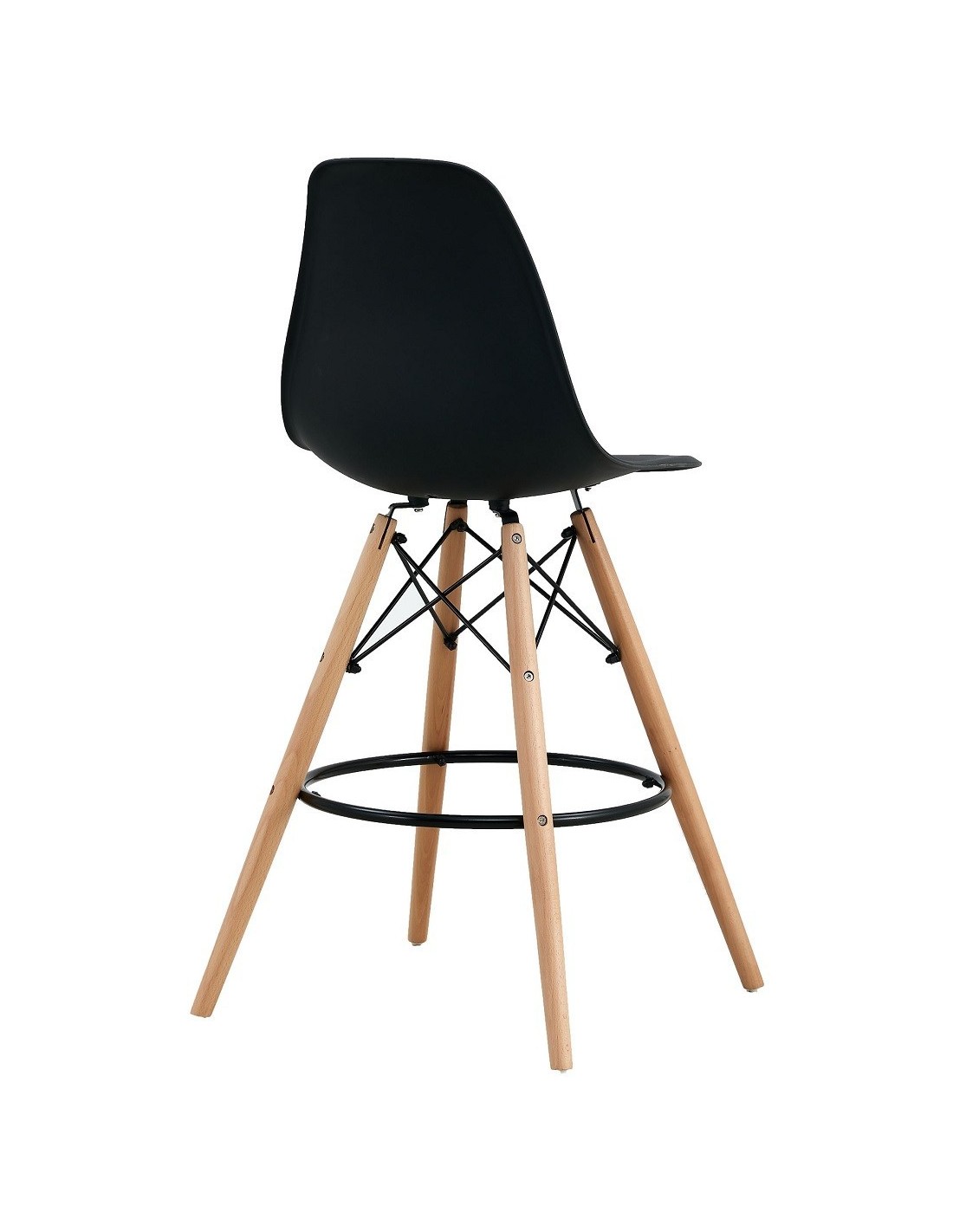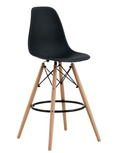 Taburete de diseño, madera, carcasa de polipropileno de color negro. Sillas y sillones a juego.