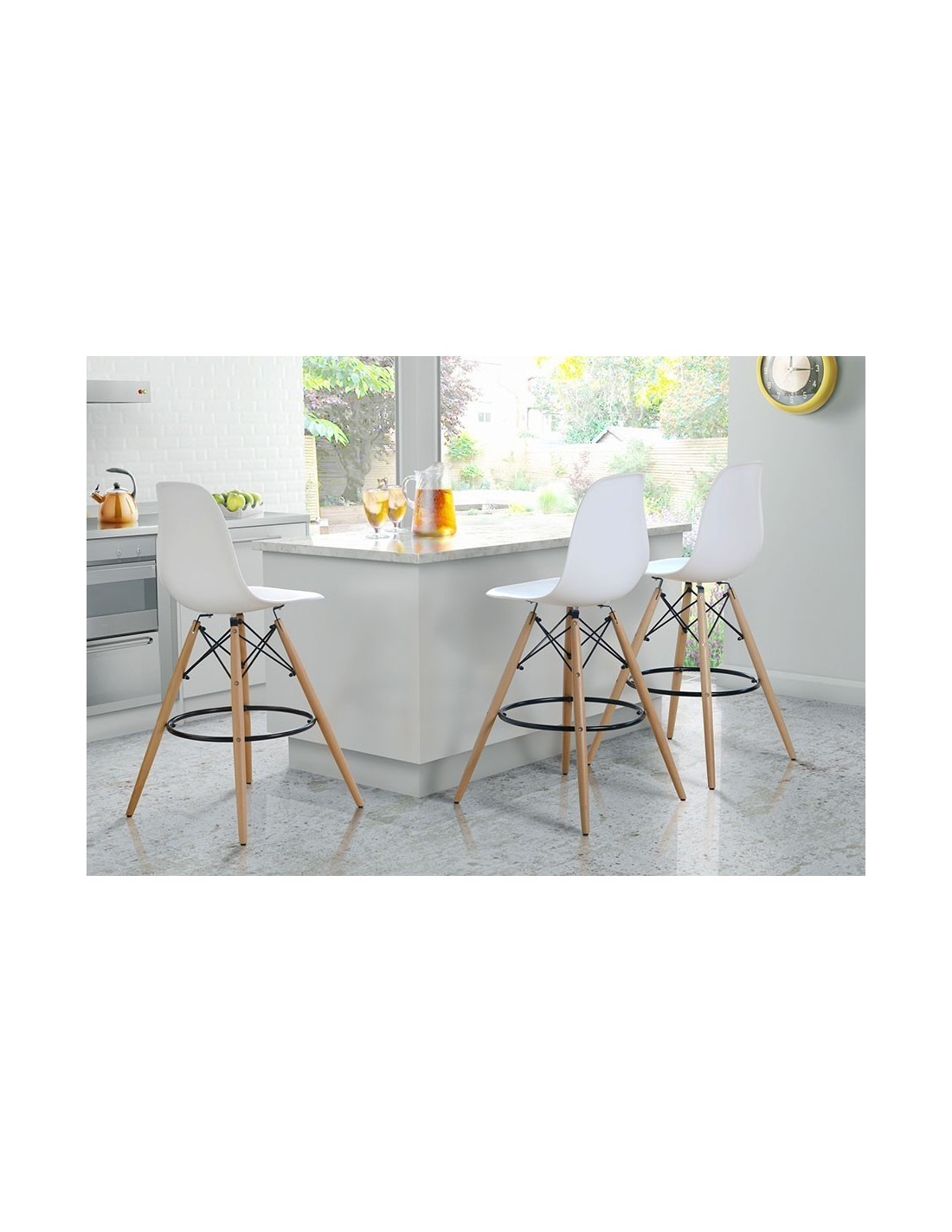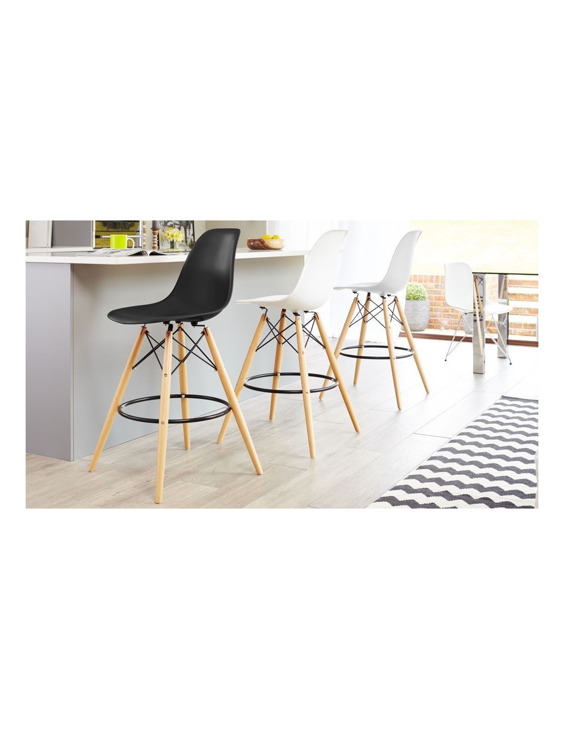 Taburete de diseño, madera, carcasa de polipropileno de color turquesa. Sillas y sillones a juego.