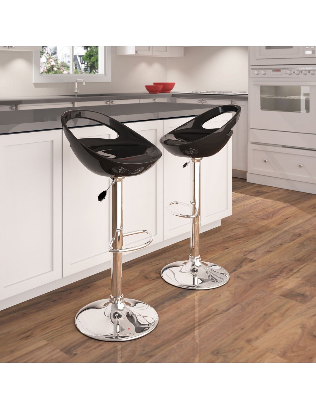 Taburete de diseño, regulable, cromado, abs color negro. Otros colores disponibles