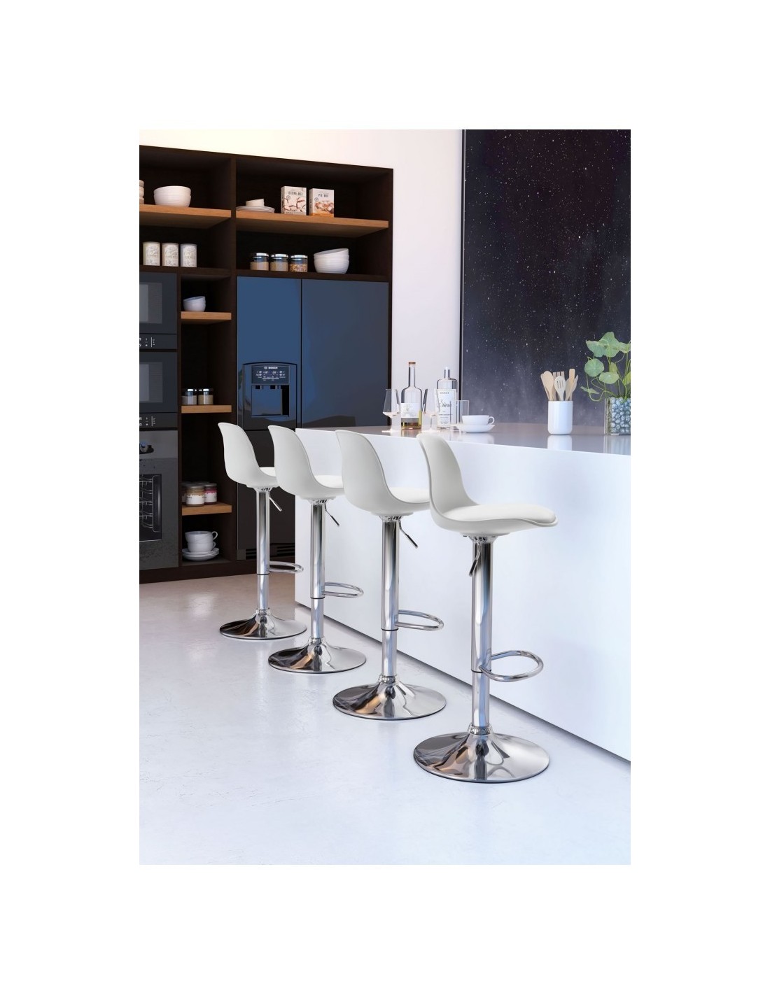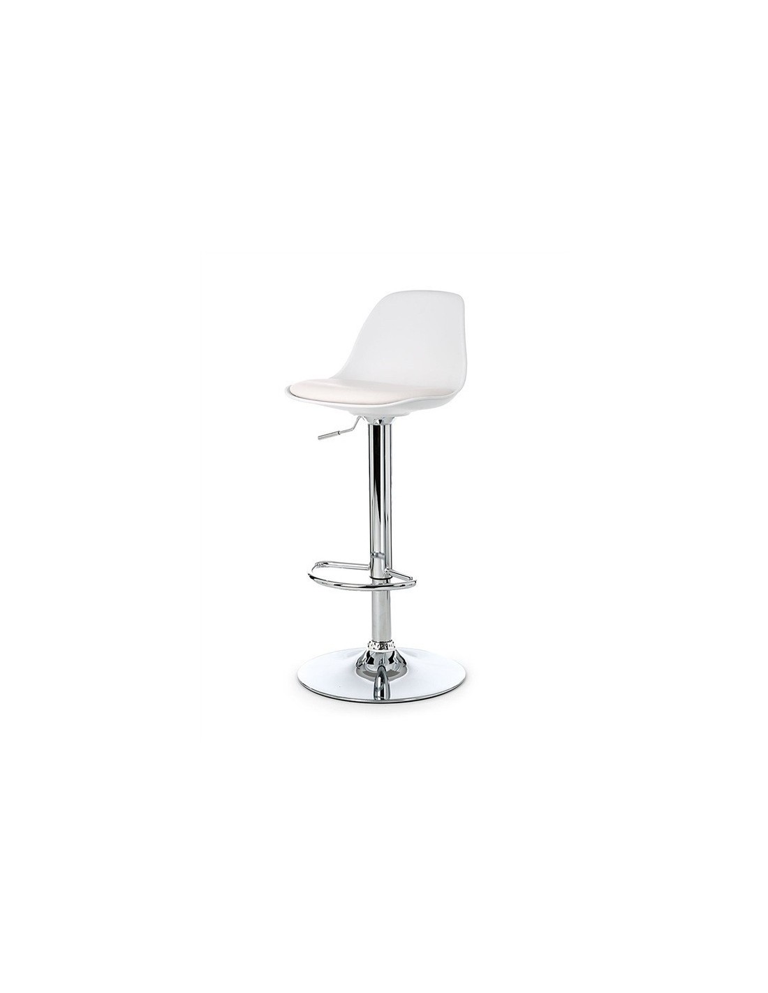 Taburete cromado, carcasa de polipropileno blanco, cojín de similpiel blanco