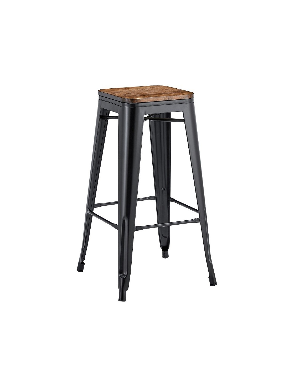 Taburete TOL EK WOOD, acero, negro, asiento madera