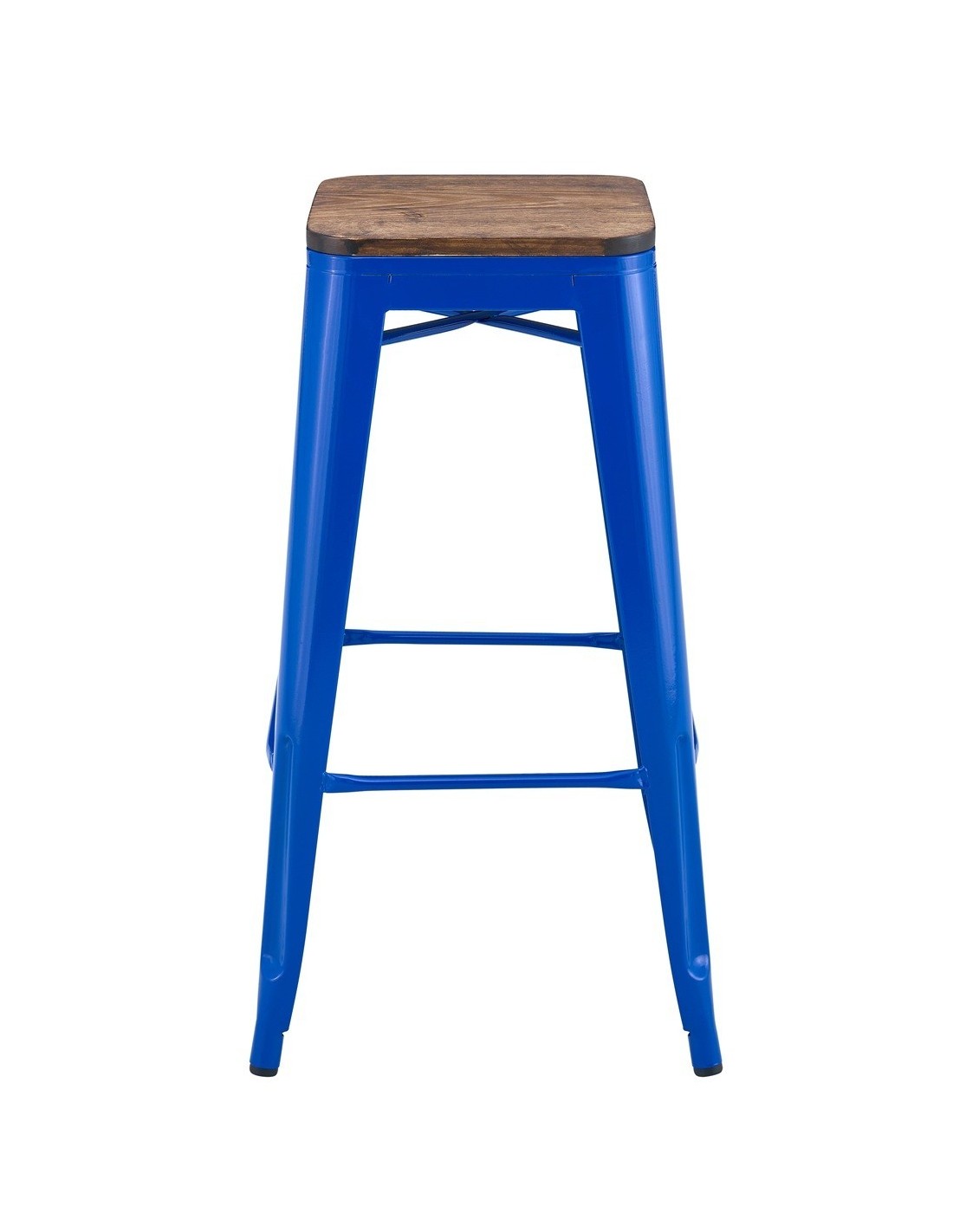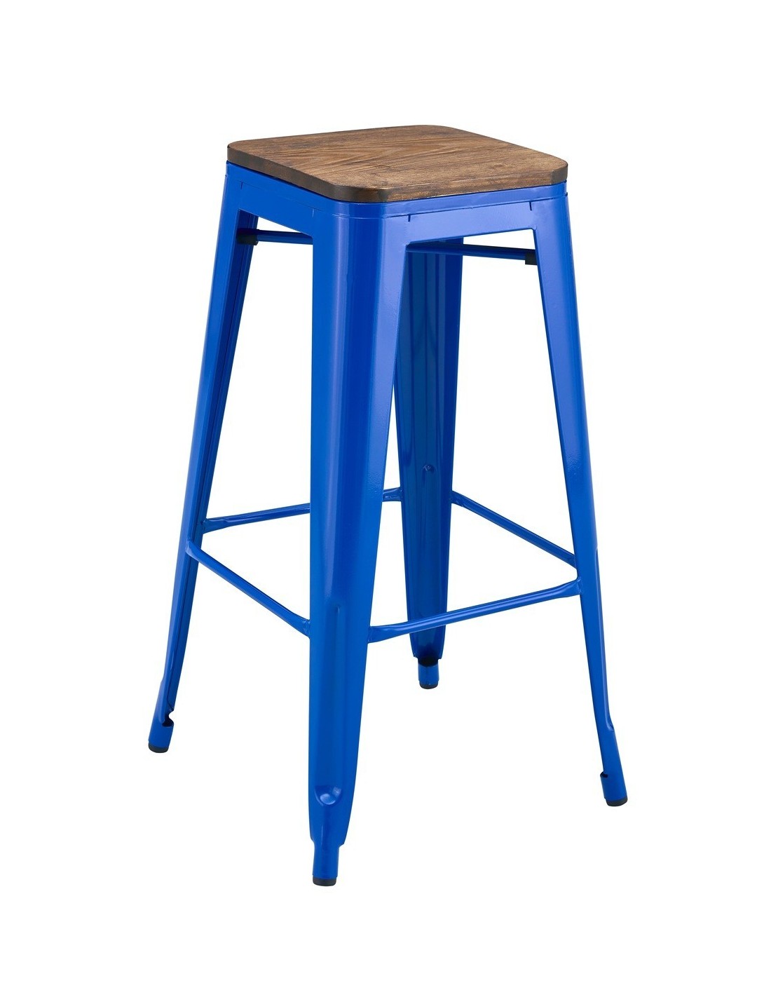 Taburete TOL EK WOOD, acero, azul, asiento madera