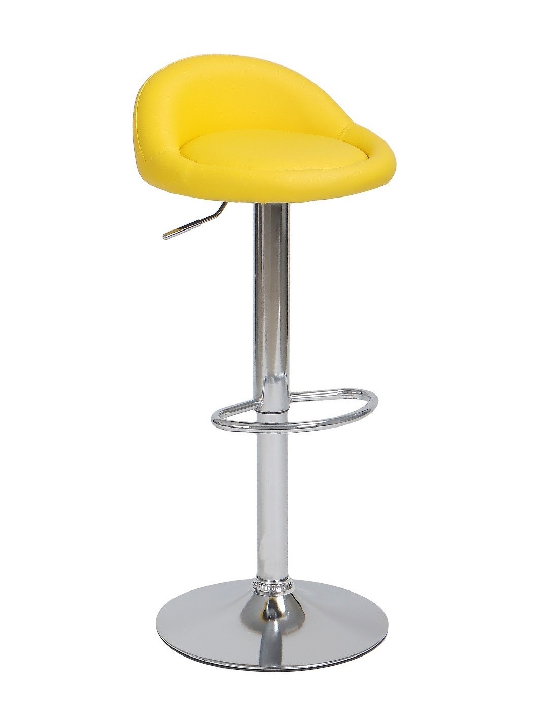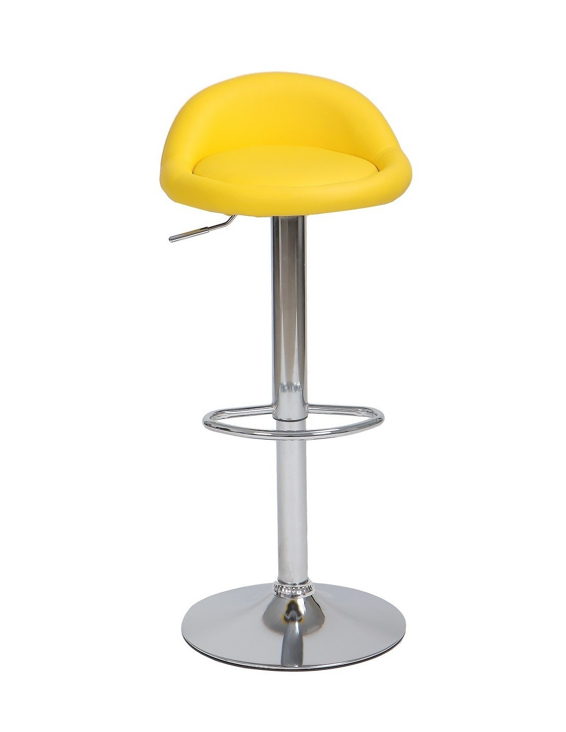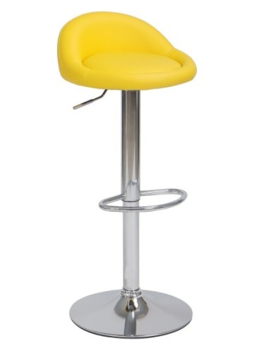 Taburete de diseño, regulable, cromado, similpiel amarilla. Otros colores disponibles.