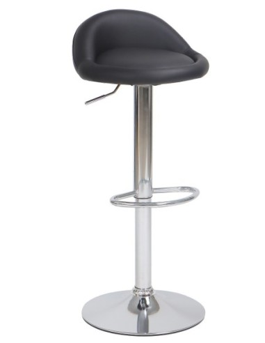 Taburete de diseño, regulable, cromado, similpiel negra. Otros colores disponibles.