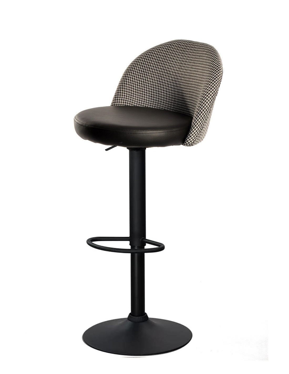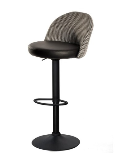 Taburete ETNA, regulable, metal negro, tapizado pata de gallo y similpiel negra