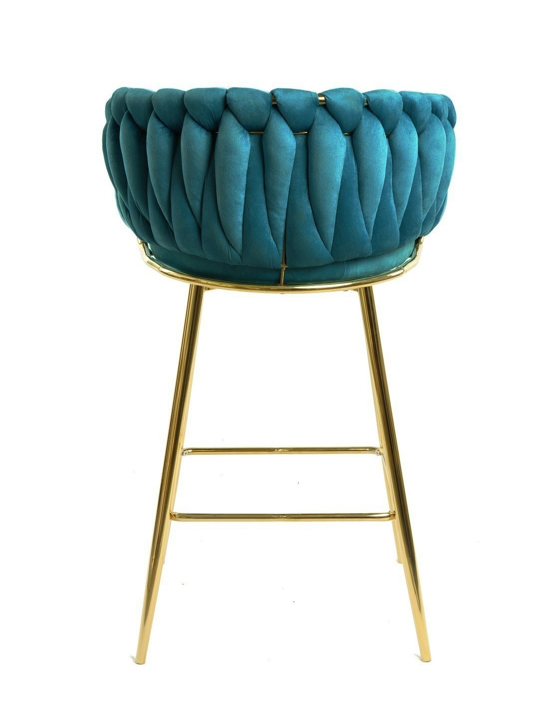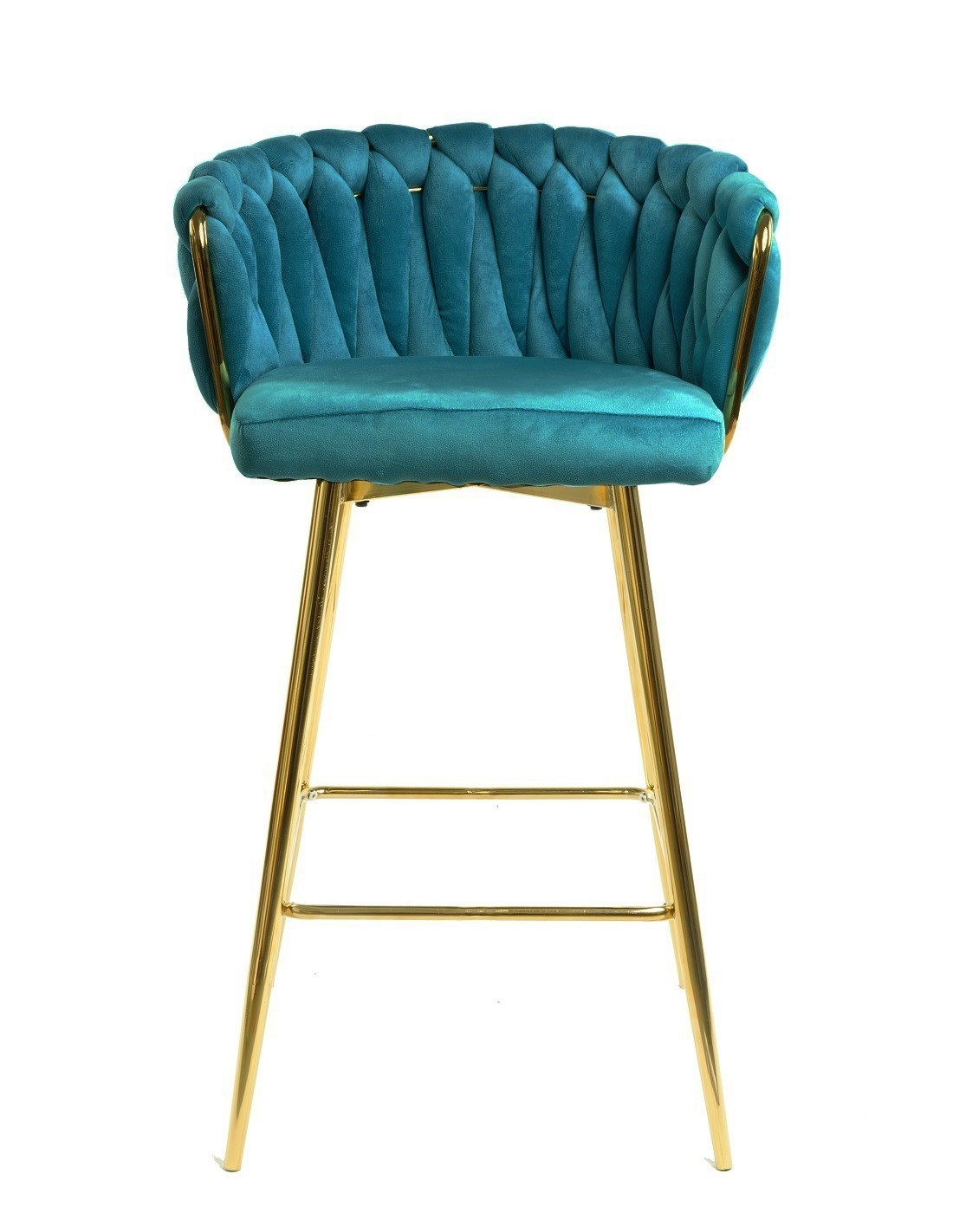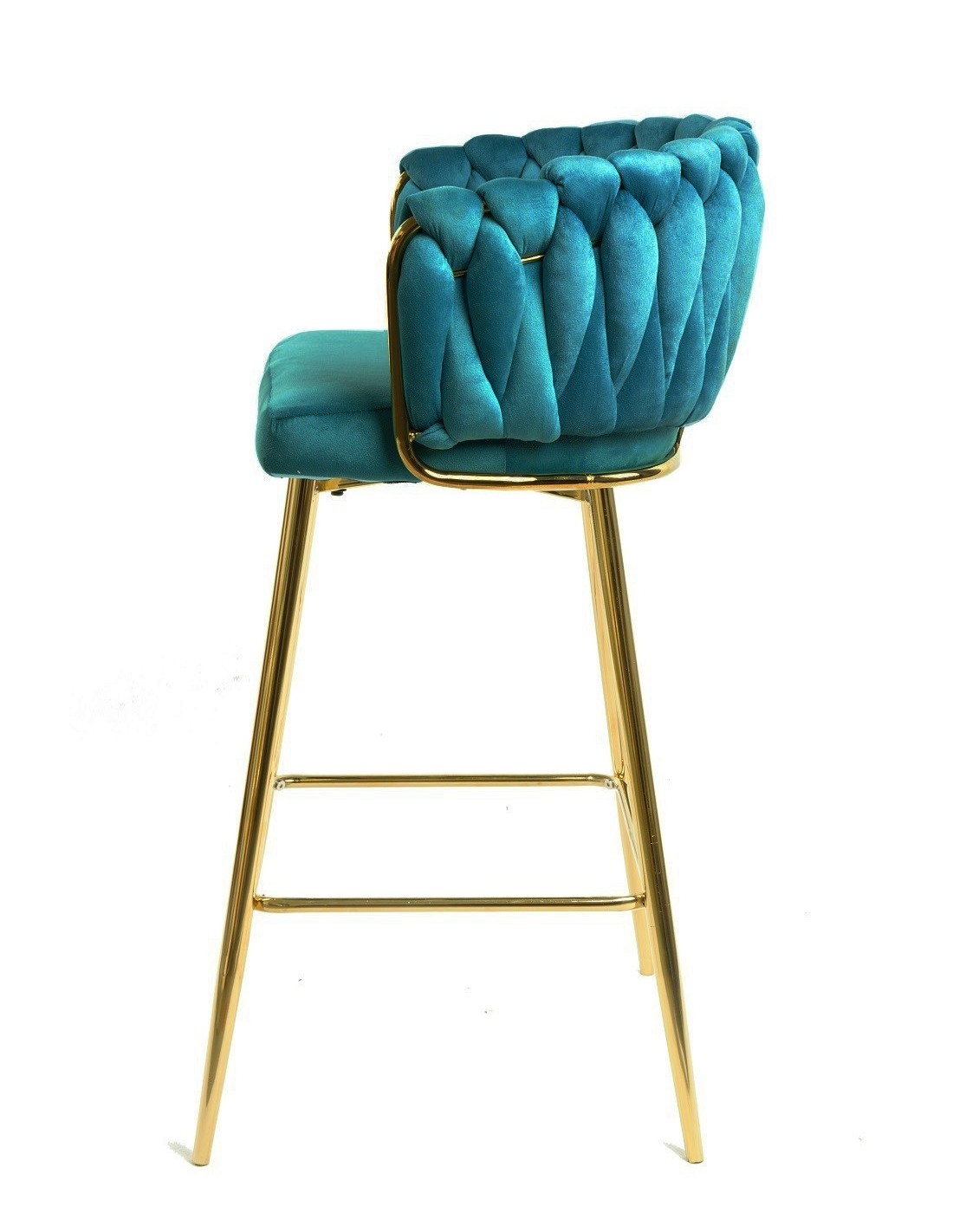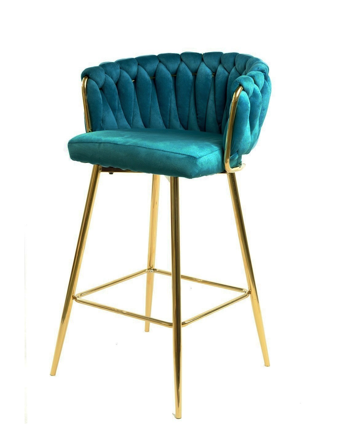 Taburete KING, metal, cromado dorado, tapizado velvet turquesa
