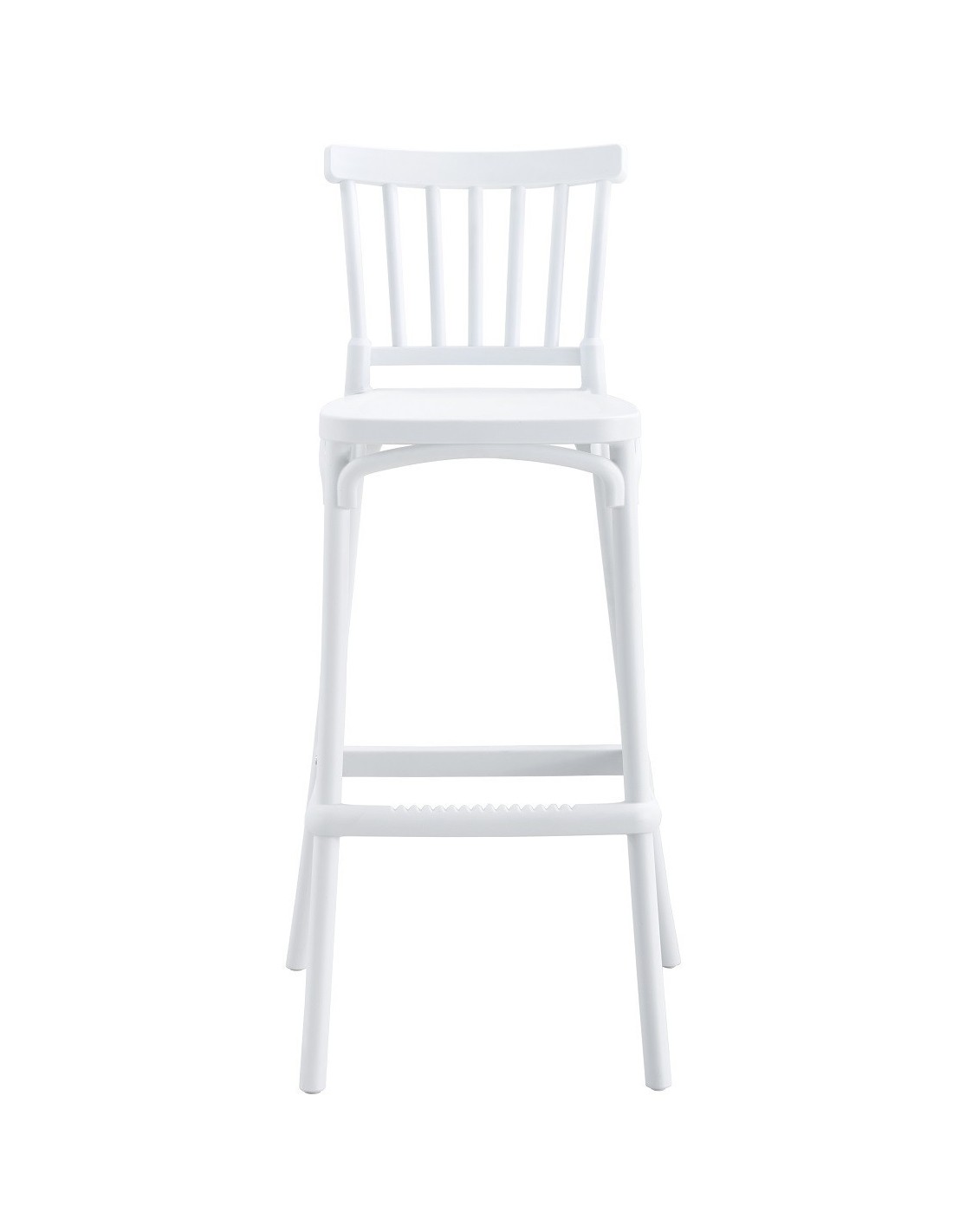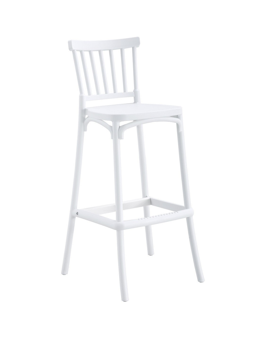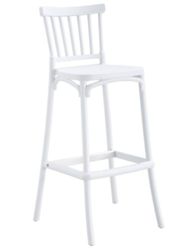 Taburete de diseño, tratamiento anti UV, polipropileno inyectado de color blanco. Uso en exterior e interior. Silla a juego. Otros colores disponibles.