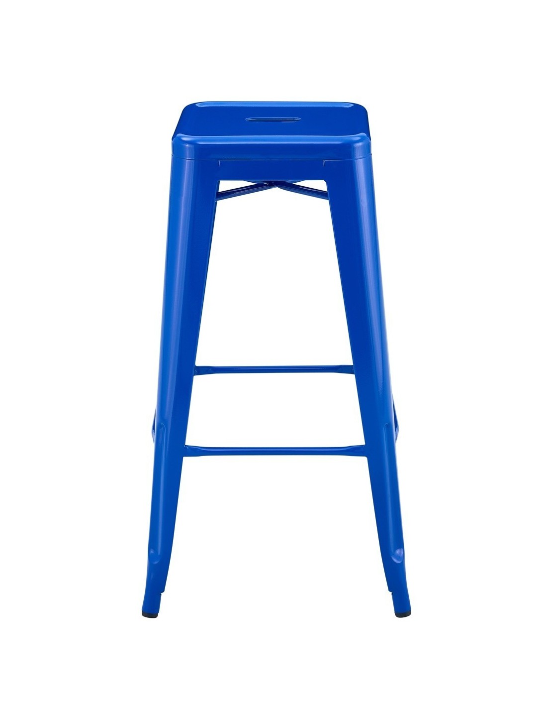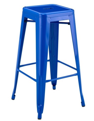 Taburete de diseño, estructura de acero, pintado en azul. Uso en interiores o exteriores. Otros colores disponibles. Mesa, silla y sillón a juego