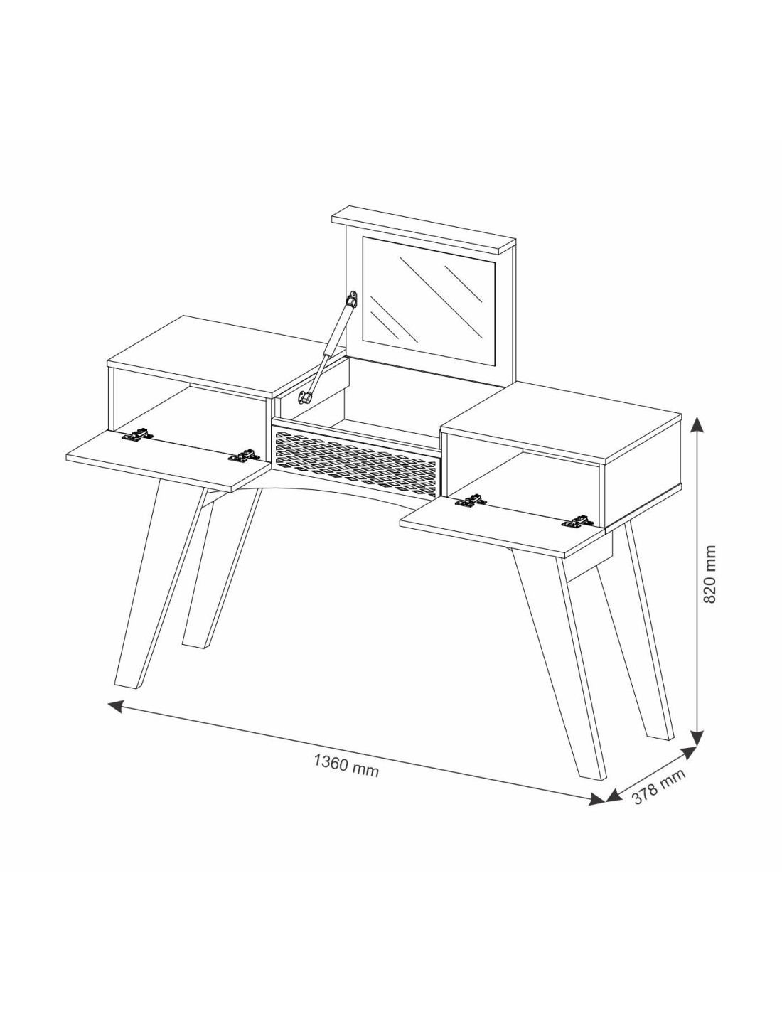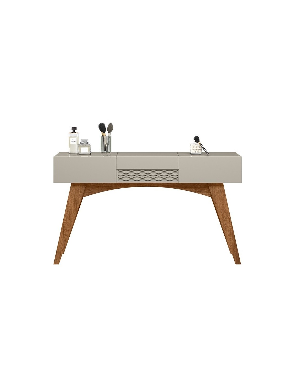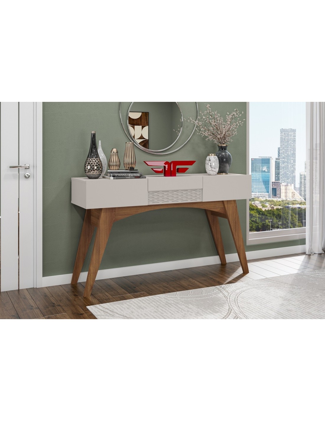 Mesa de diseño fabricada con laterales de cristal templado con acabado transparente. 12 mm. de espesor. Cajonera lacada en blanco alto brillo